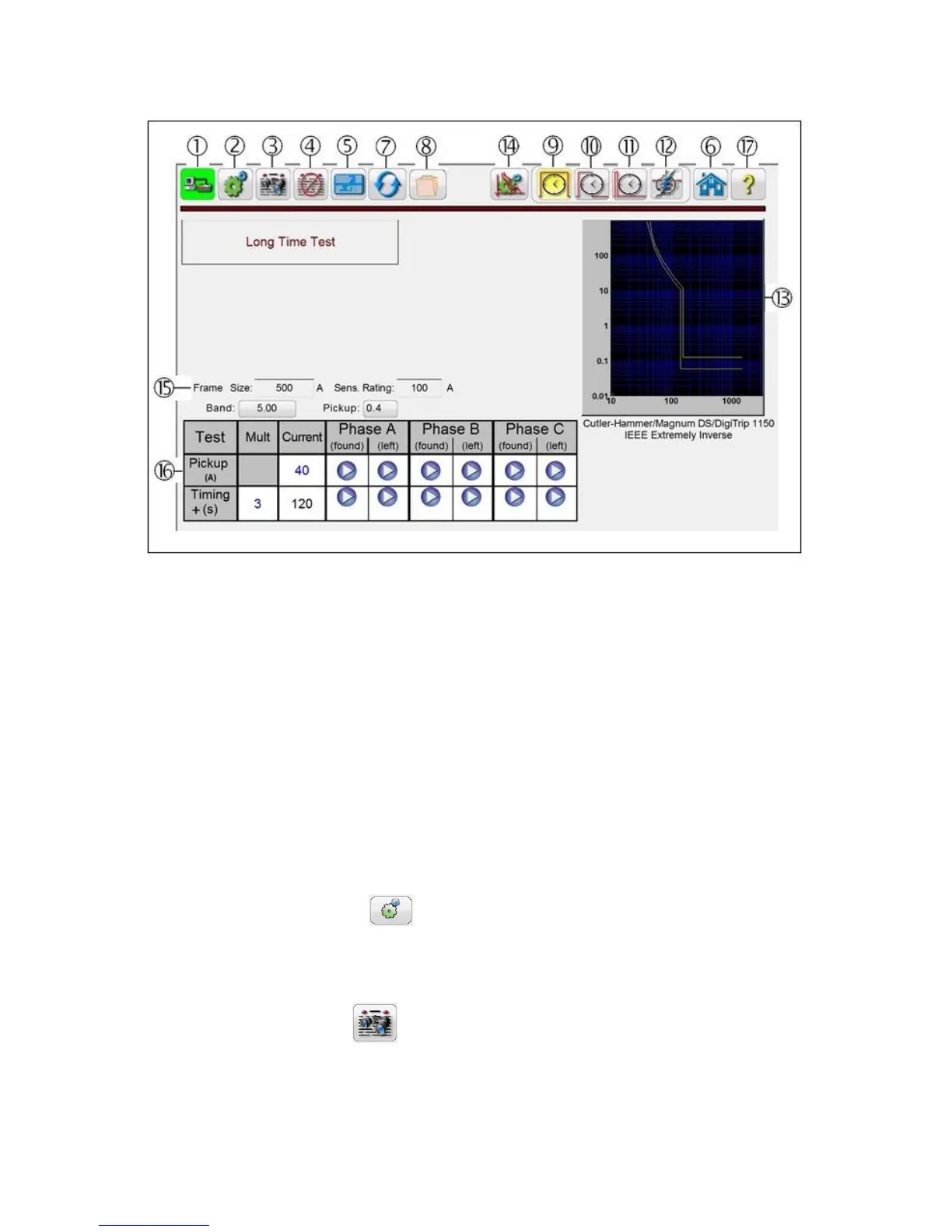 Selection of a specific manufacturer’s circuit breaker will result in a test screen looking something similar