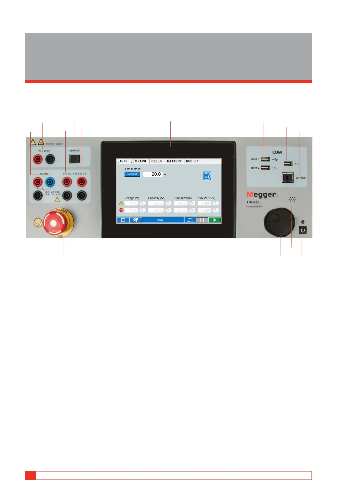 The connection to the test object (battery bank) is