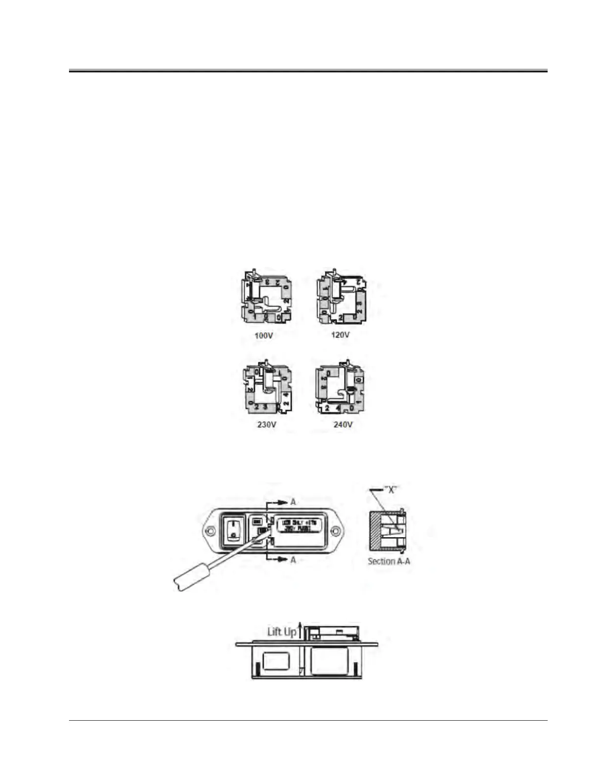 To change selected voltage: open cover, using small blade screwdriver or similar