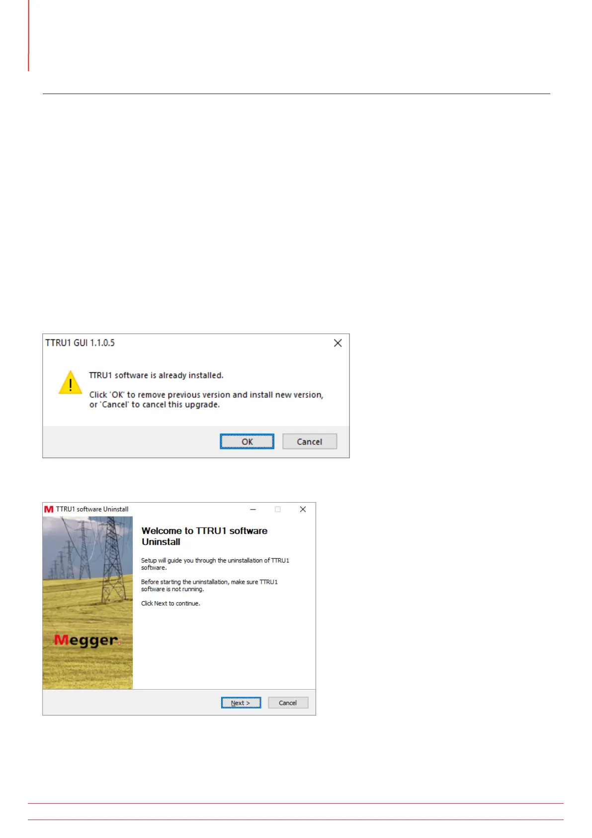 When updating to a new version of the TTRU1 software, the installer will remove the installed version of software.