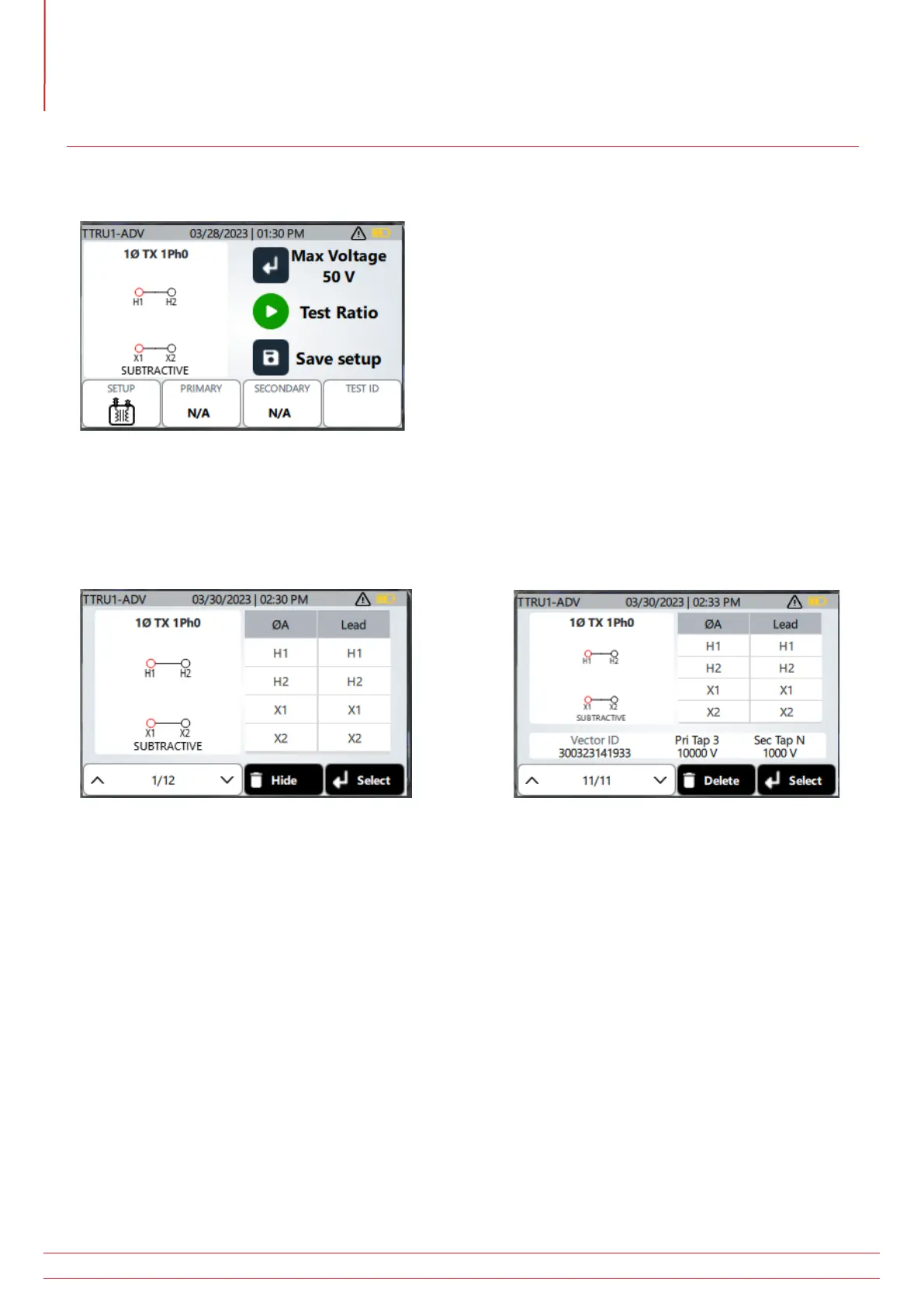 on the TEST ID. Custom vector primary and secondary winding information can be updated and resaved to update