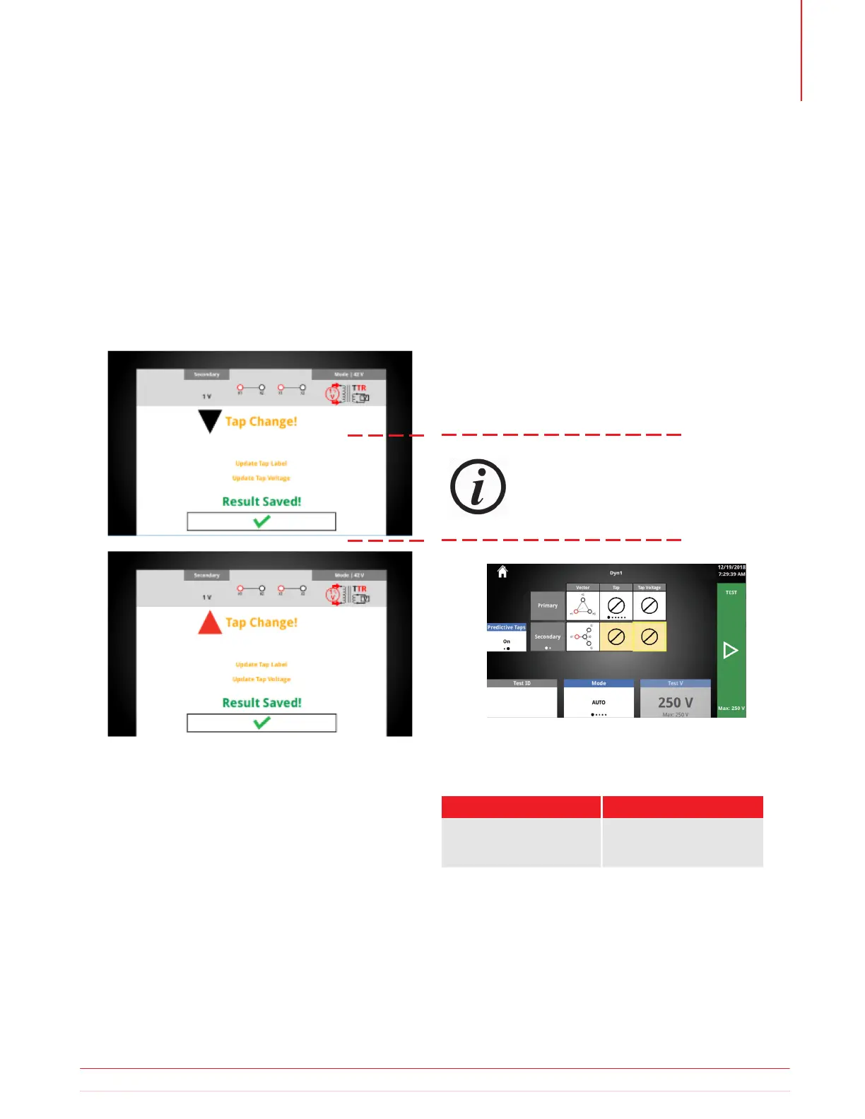 After releasing the tap change button, a message