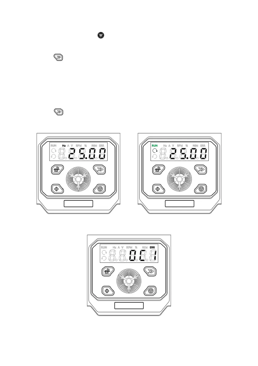 When the drive receives the valid operation command, it will start to run. The operating panel will display the running