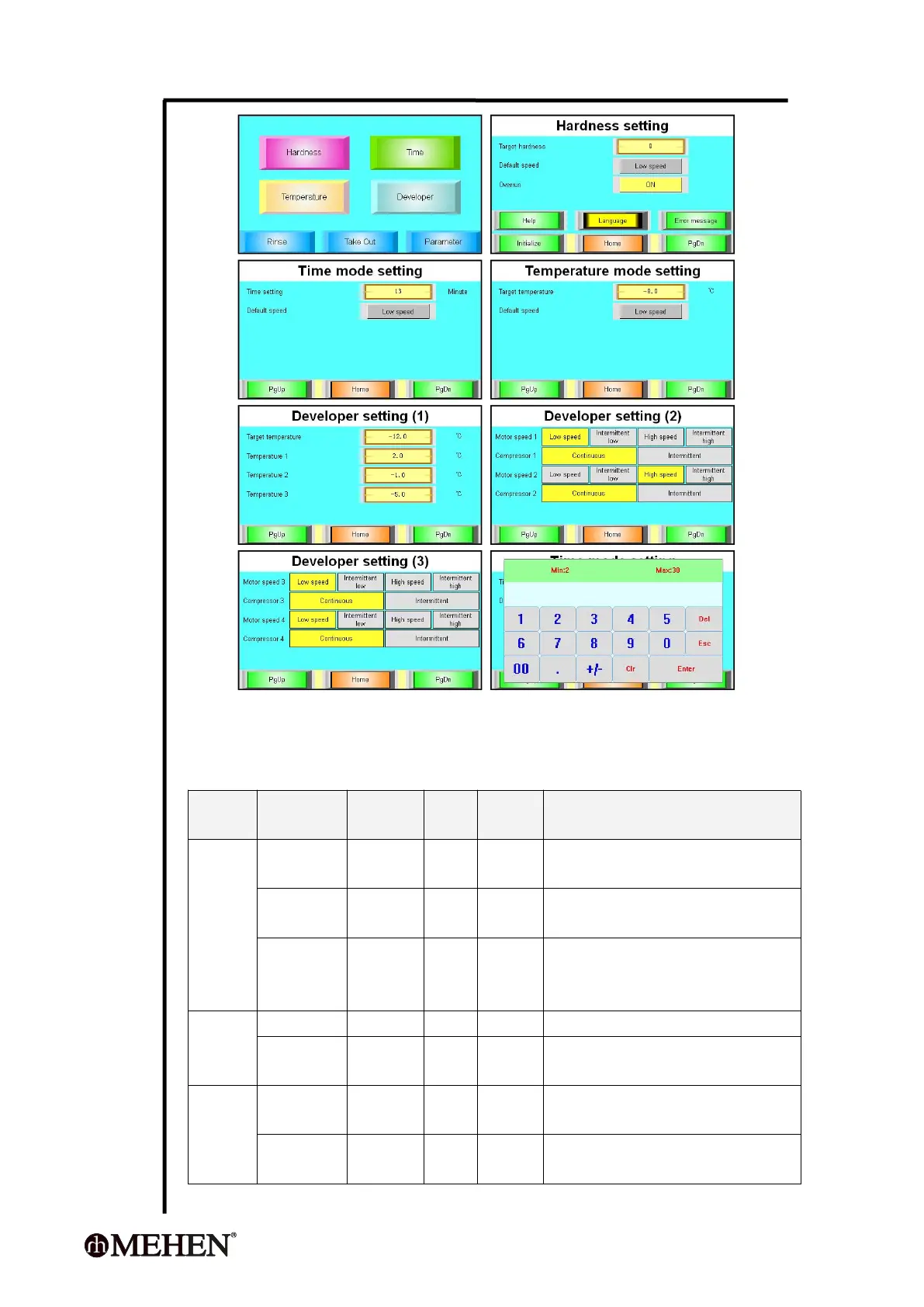 MEHEN M10 - Programs Setting