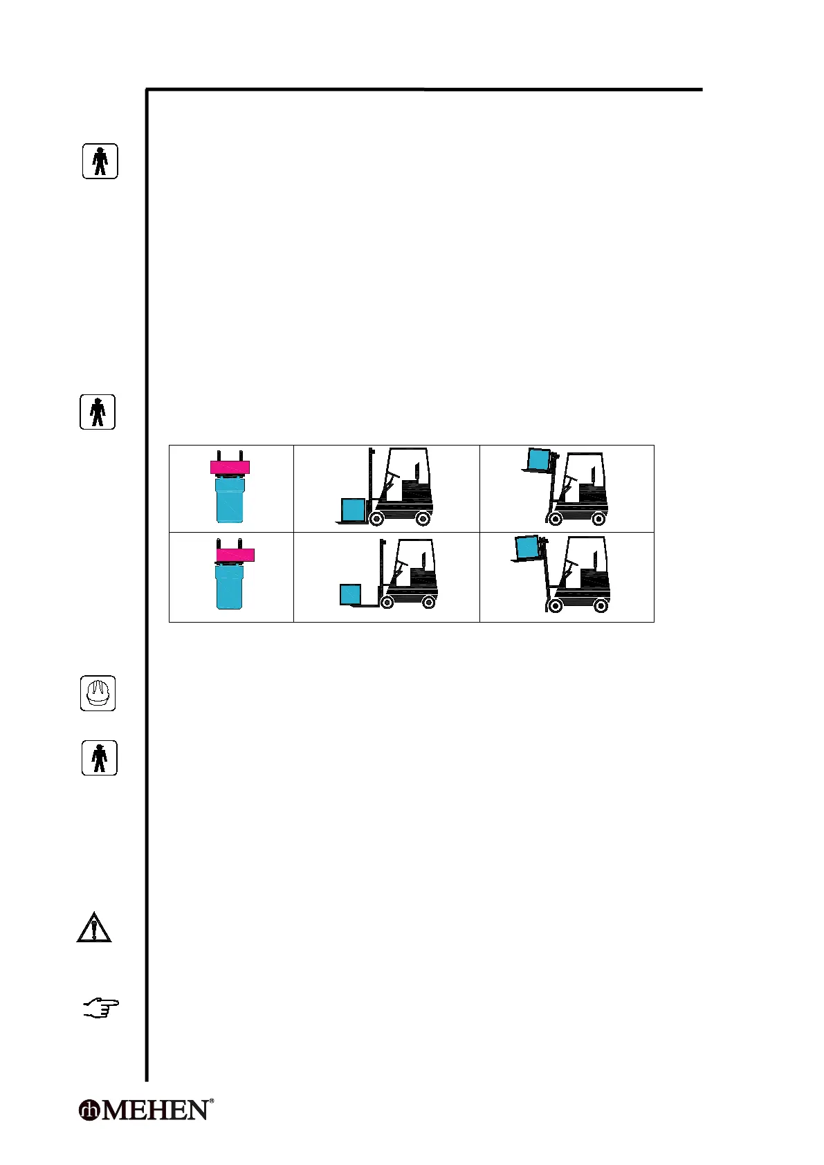 To move the package, insert lift forks into the space between pallet feet, so as to