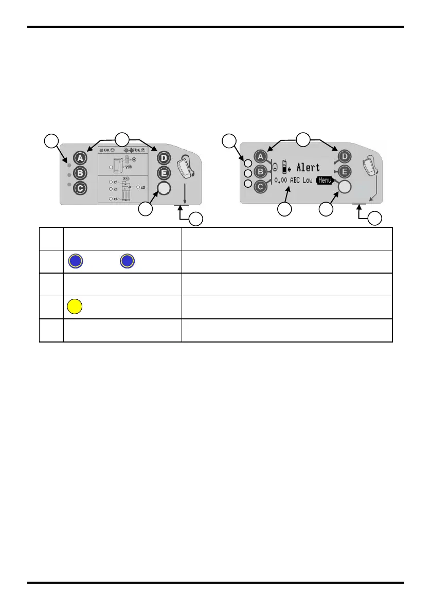 Die blauen Tasten (als A bis E markiert) haben zwei Funktionen.
