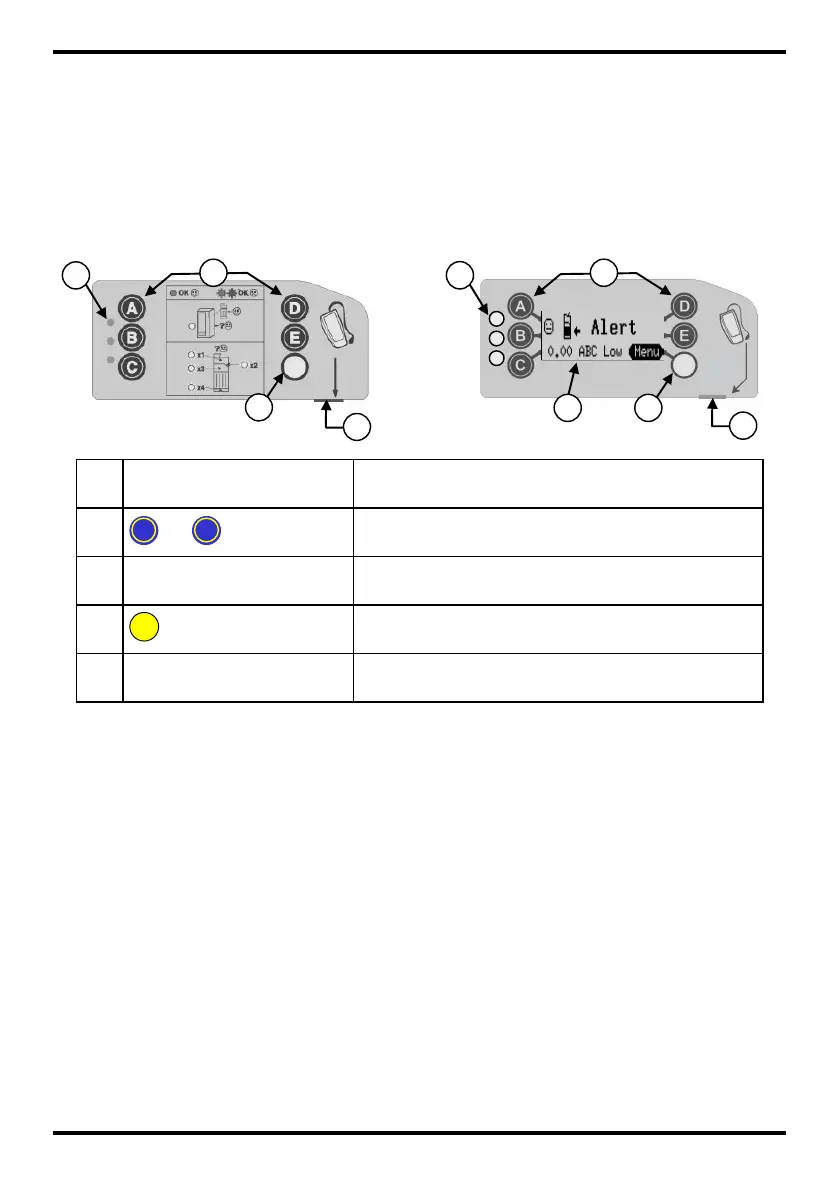 The blue keys (marked A to E) have two functions.