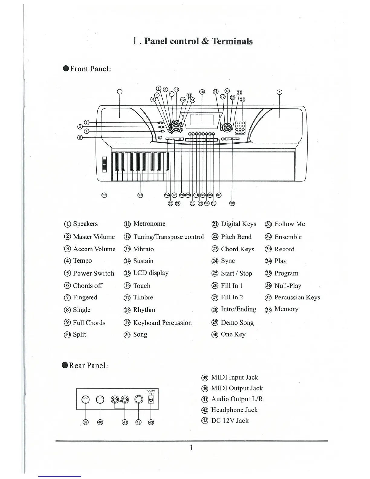 Meike mk-931 - I. Panel control & Terminals; Front Panel; Rear Panel