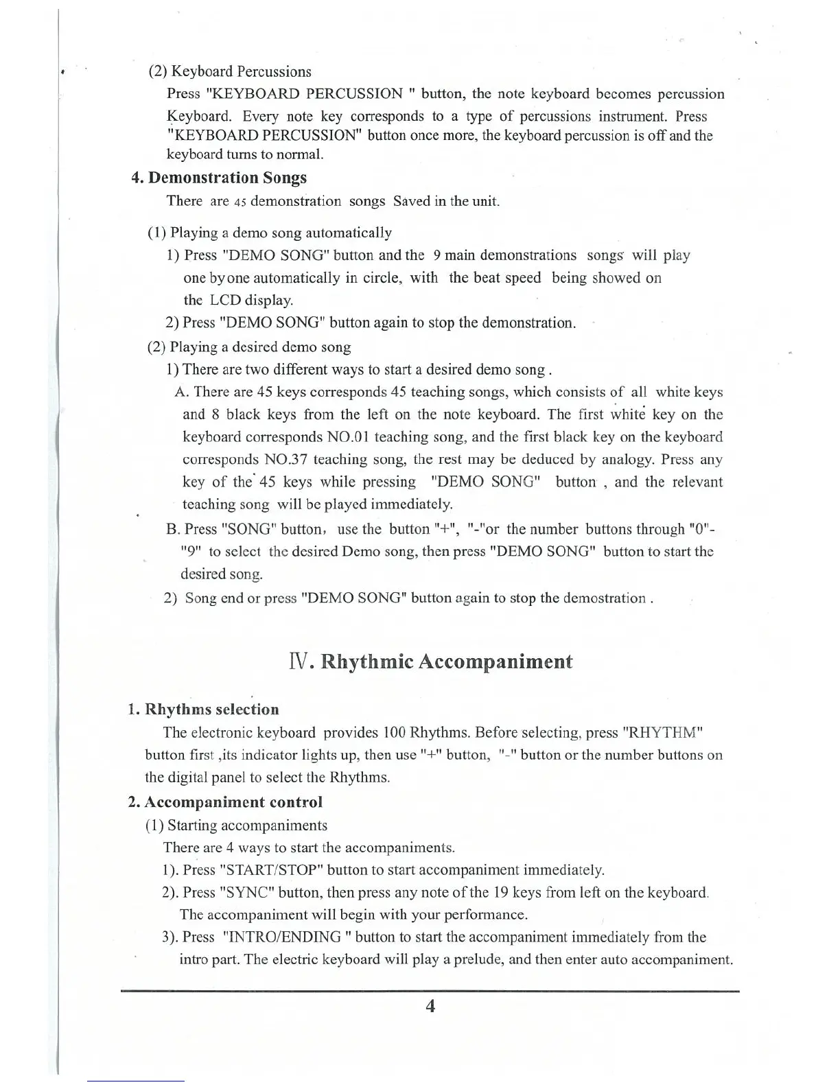 Meike mk-931 - IV. Rhythmic Accompaniment; Rhythms selection; Accompaniment control; Auto Metronome