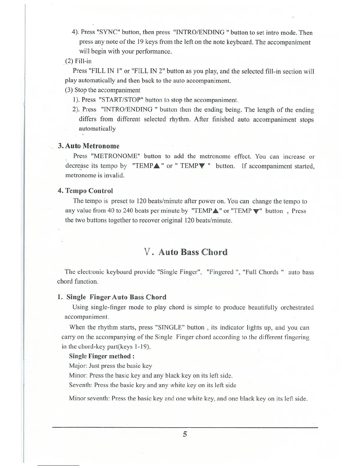 Meike mk-931 - V. Auto Bass Chord; Single Finger Auto Bass Chord