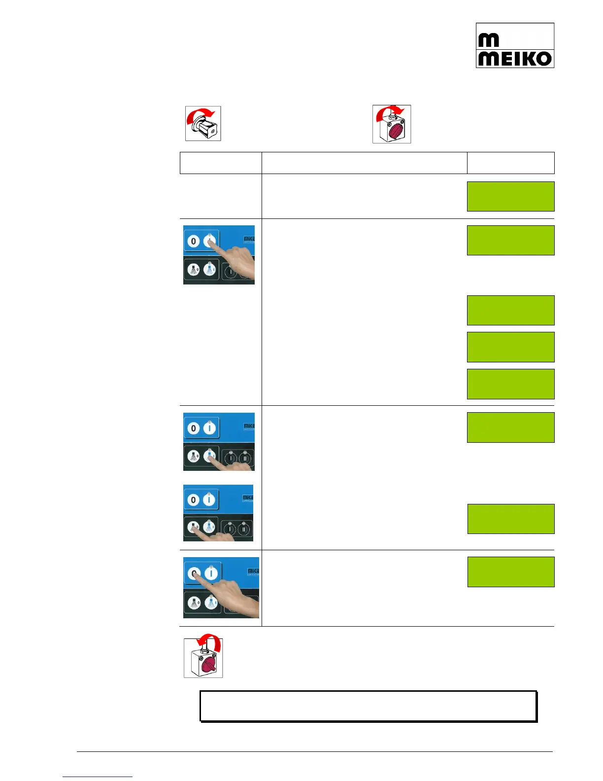 Starting condition: Machine off!