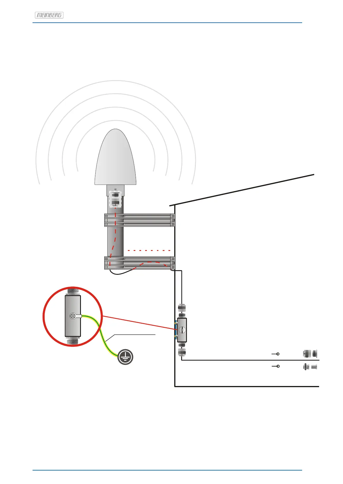 Optional a surge voltage protector for coaxial lines is available. The shield has to be connected to earth as
