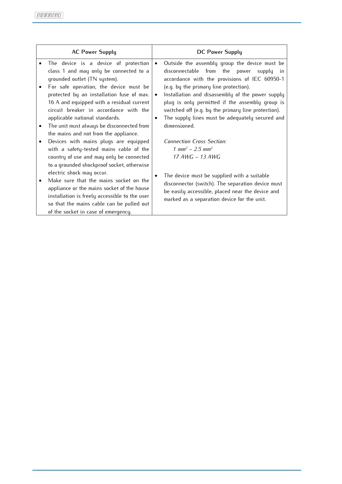 • The device must be supplied with a suitable