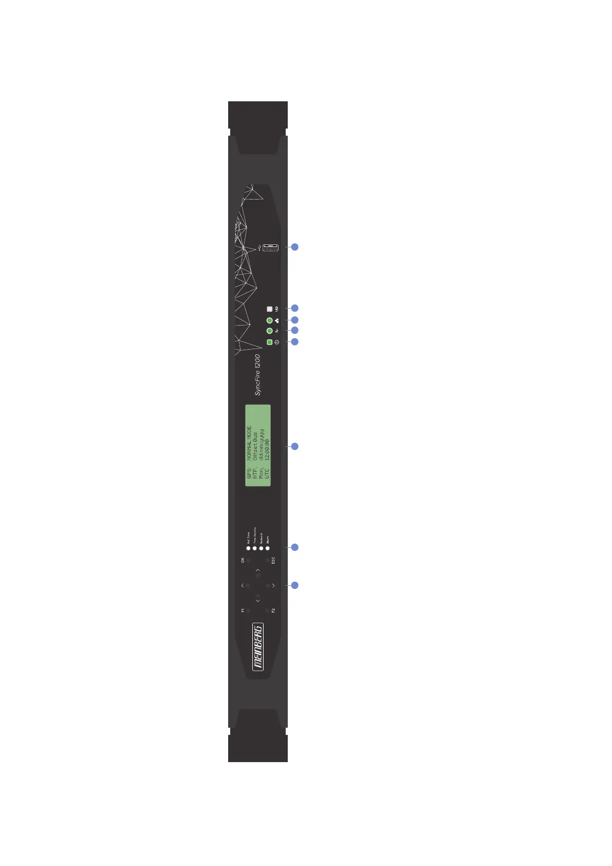 2. Status LEDs: Ref. Time, Time Service, Network, Alarm