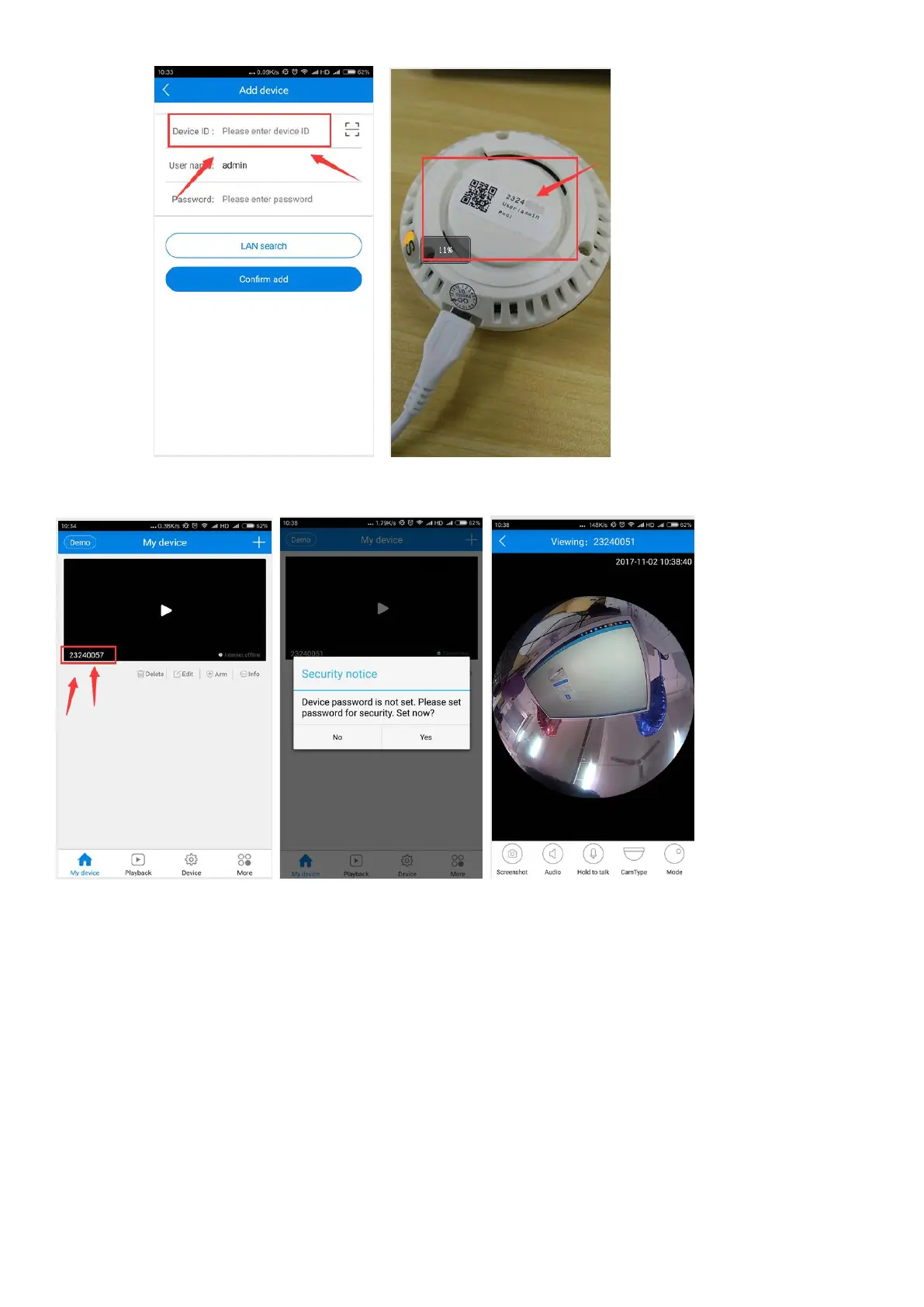 5The ID should be same on the body of the camera.( you can open the app to watch video when you finish it