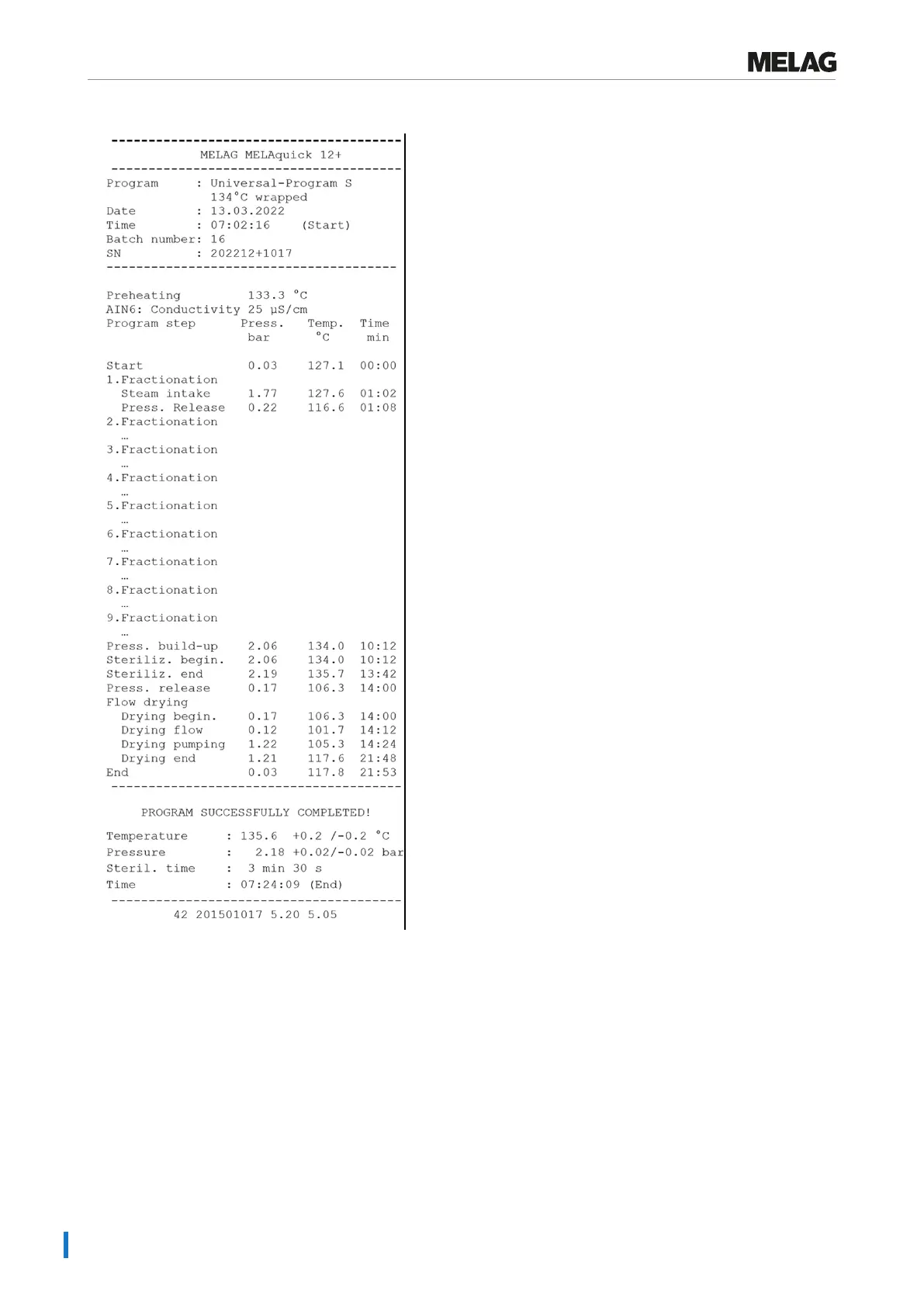 Median sterilization pressure with max. deviations