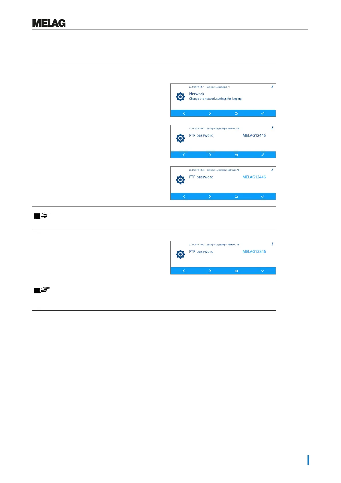 The following section describes how to set the FTP password. The TCP port is set in the same fashion.