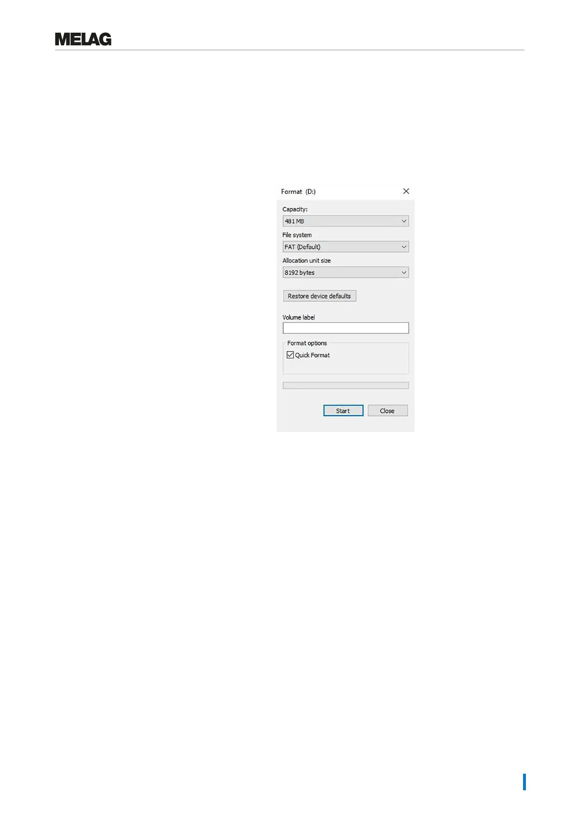 The device can only file or read data on CF cards formatted in this way. CF cards supplied by MELAG fulfil