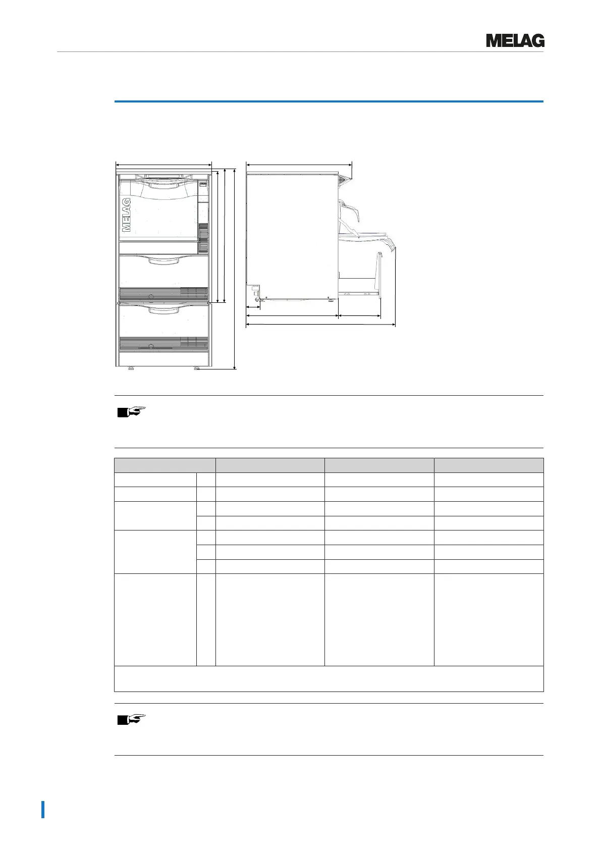 If the device is installed in an L-shaped corner, drawers to the left or right of the device