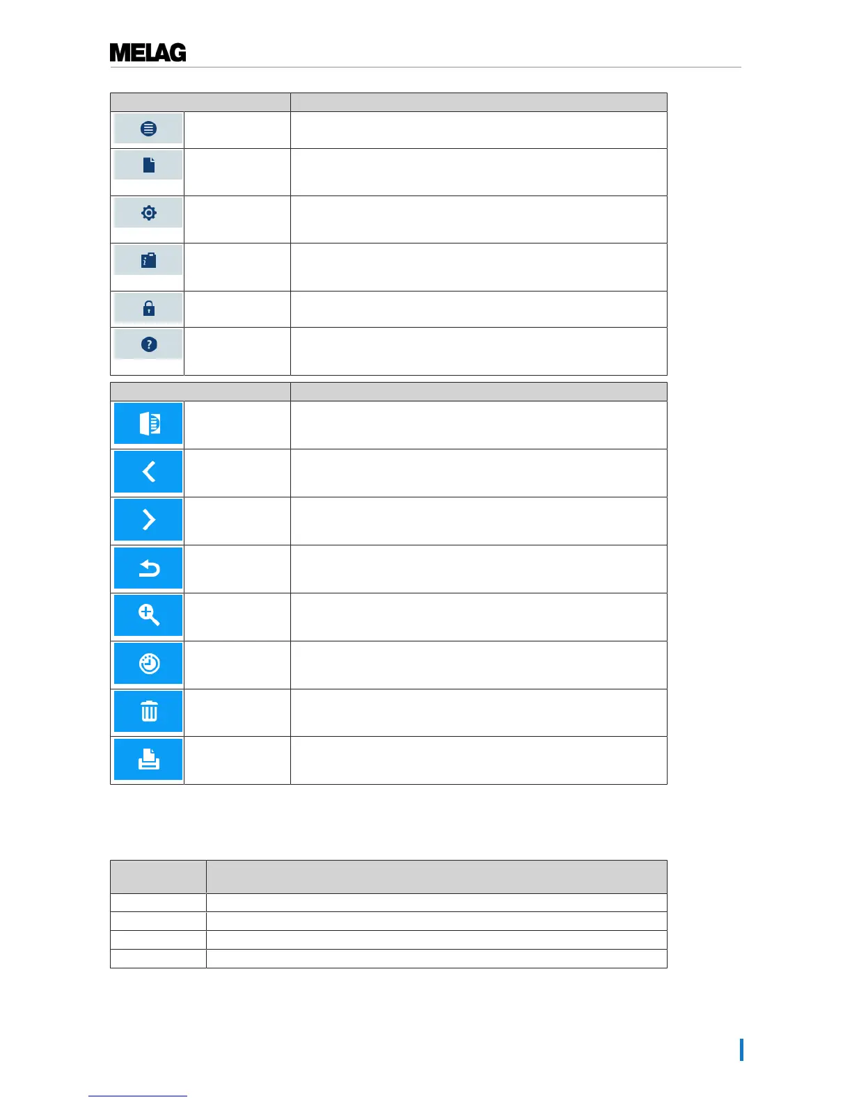 Symbols in the action bar Meaning