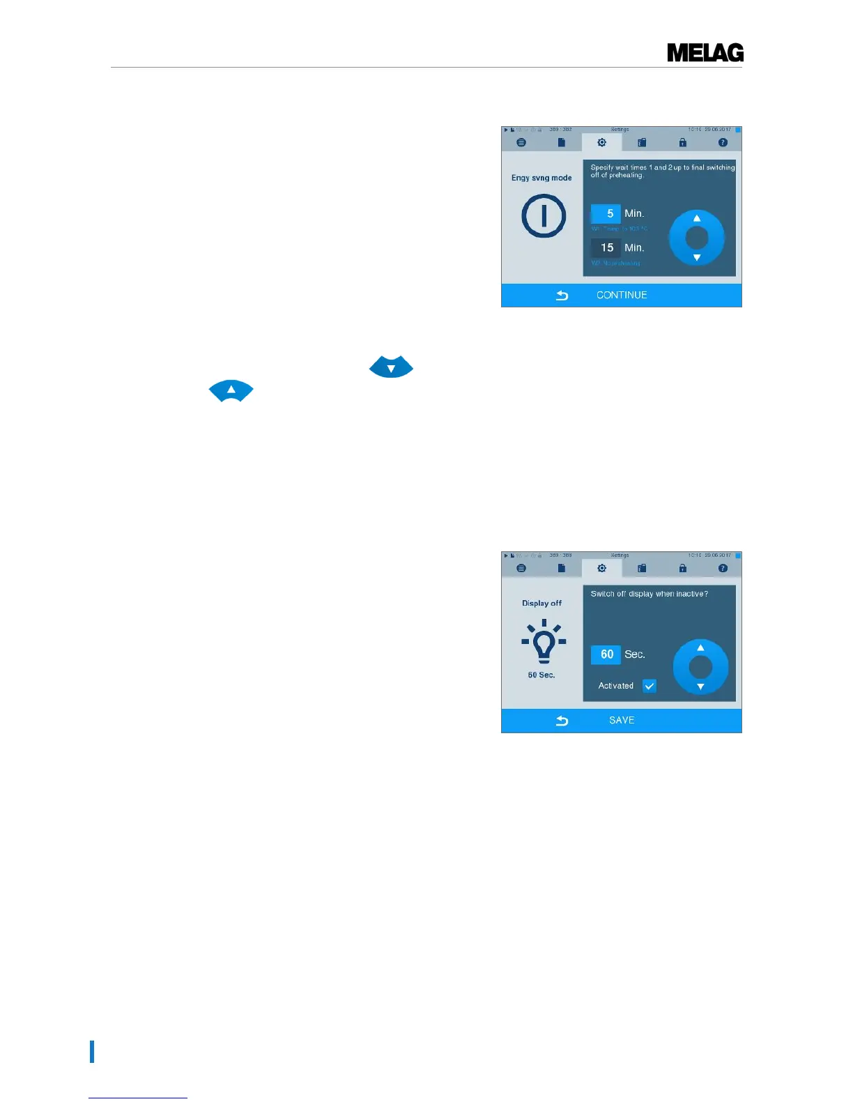 Optionally, you can choose whether the display is to be switched off when the steam sterilizer is in energy-