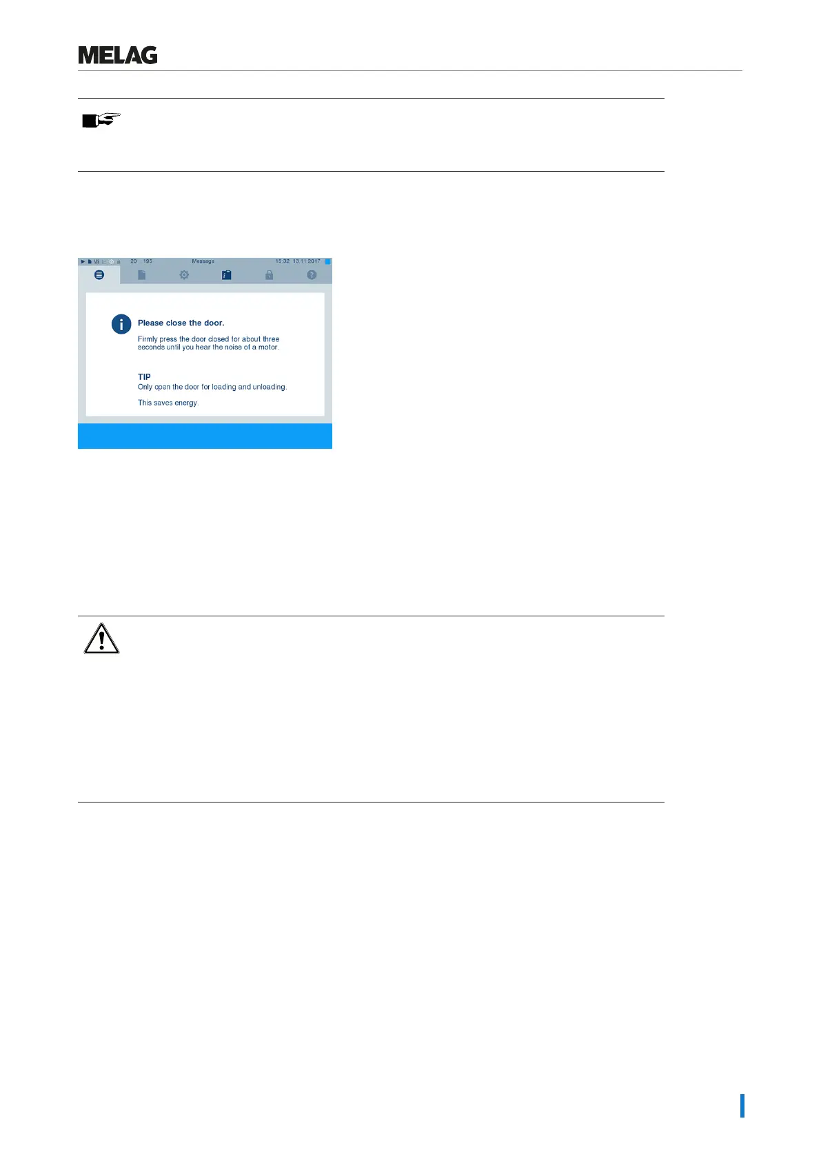 closed, the display returns to the program menu. The door is locked pressure-tight upon program start.