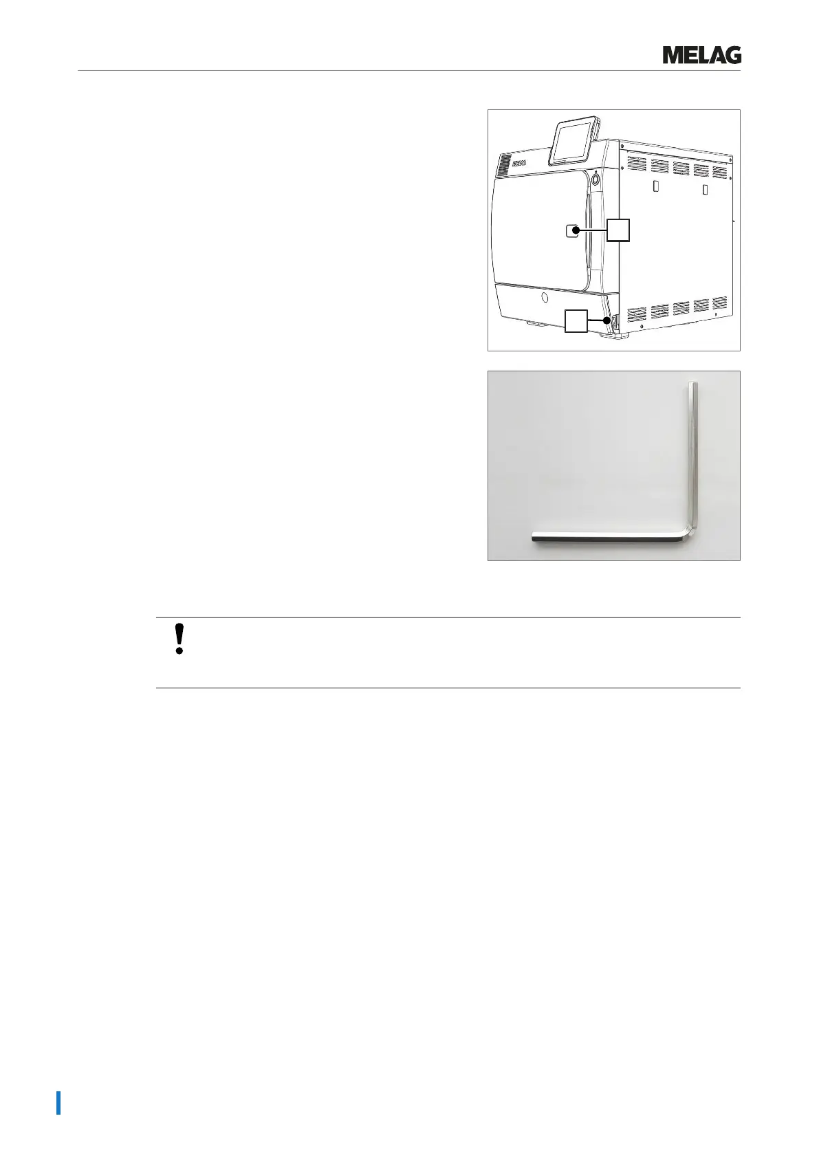 Do not open the door as long as the Allen key is inserted. This may cause damage to the