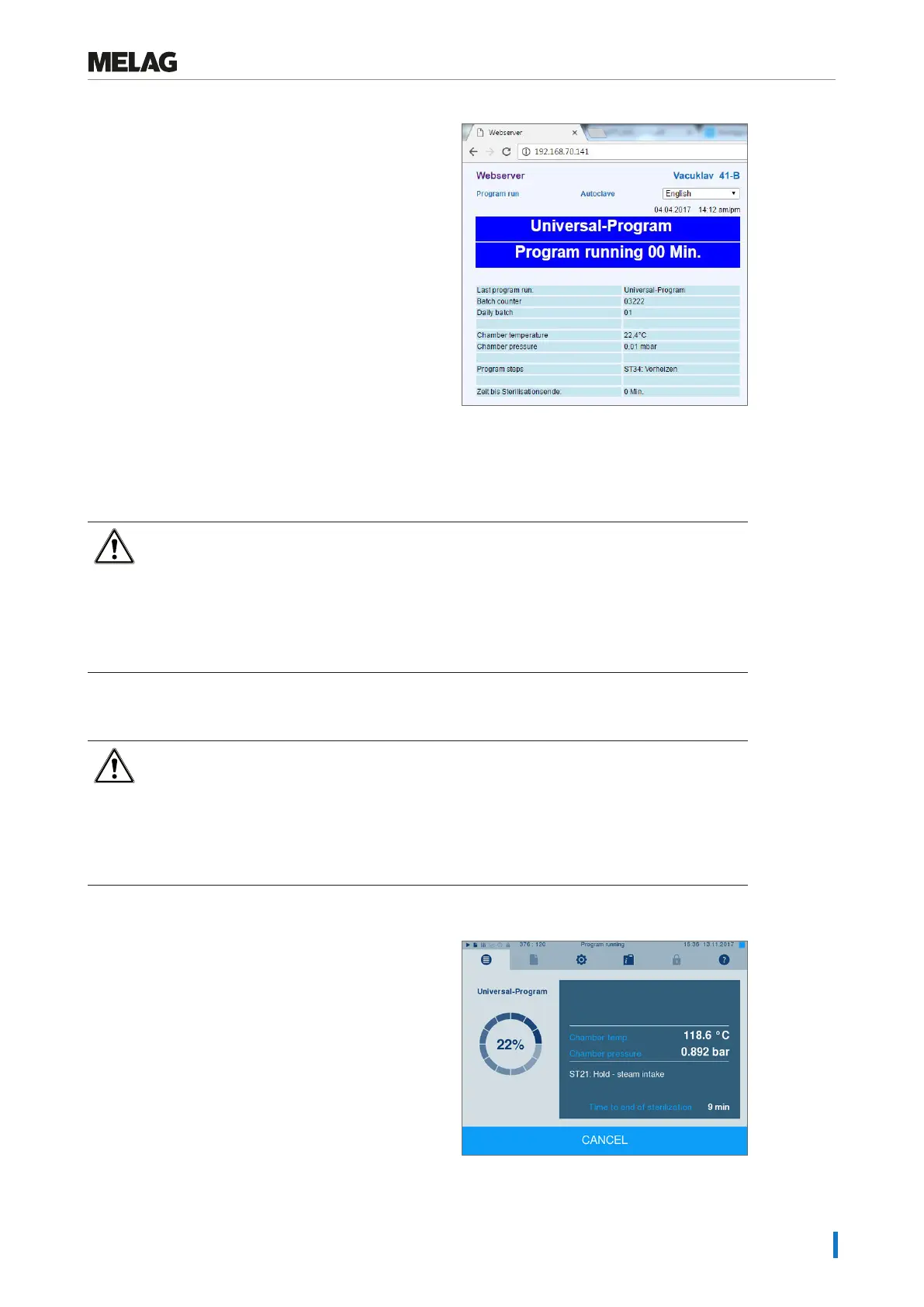You can abort a current program in all phases. If you end a program before drying begins, the sterilization