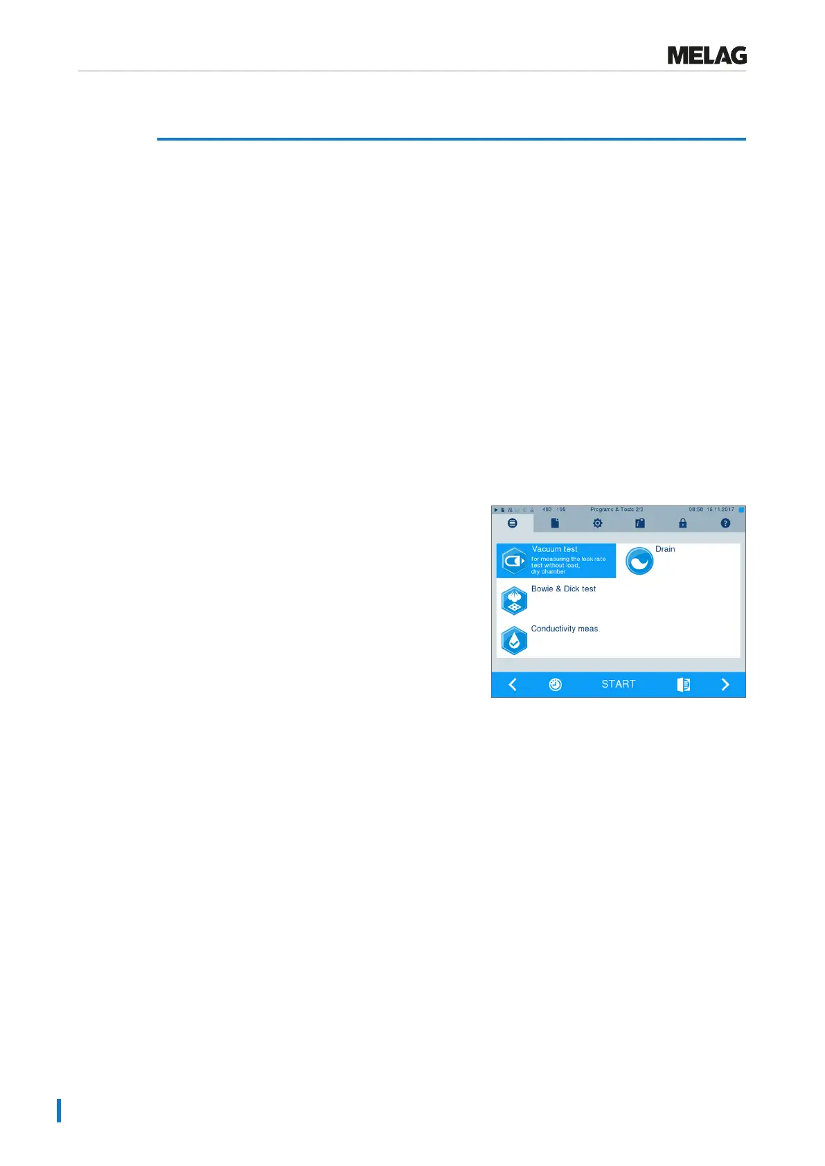 The steam sterilizer can be checked for leakages in the steam system using the Vacuum test. This deter-