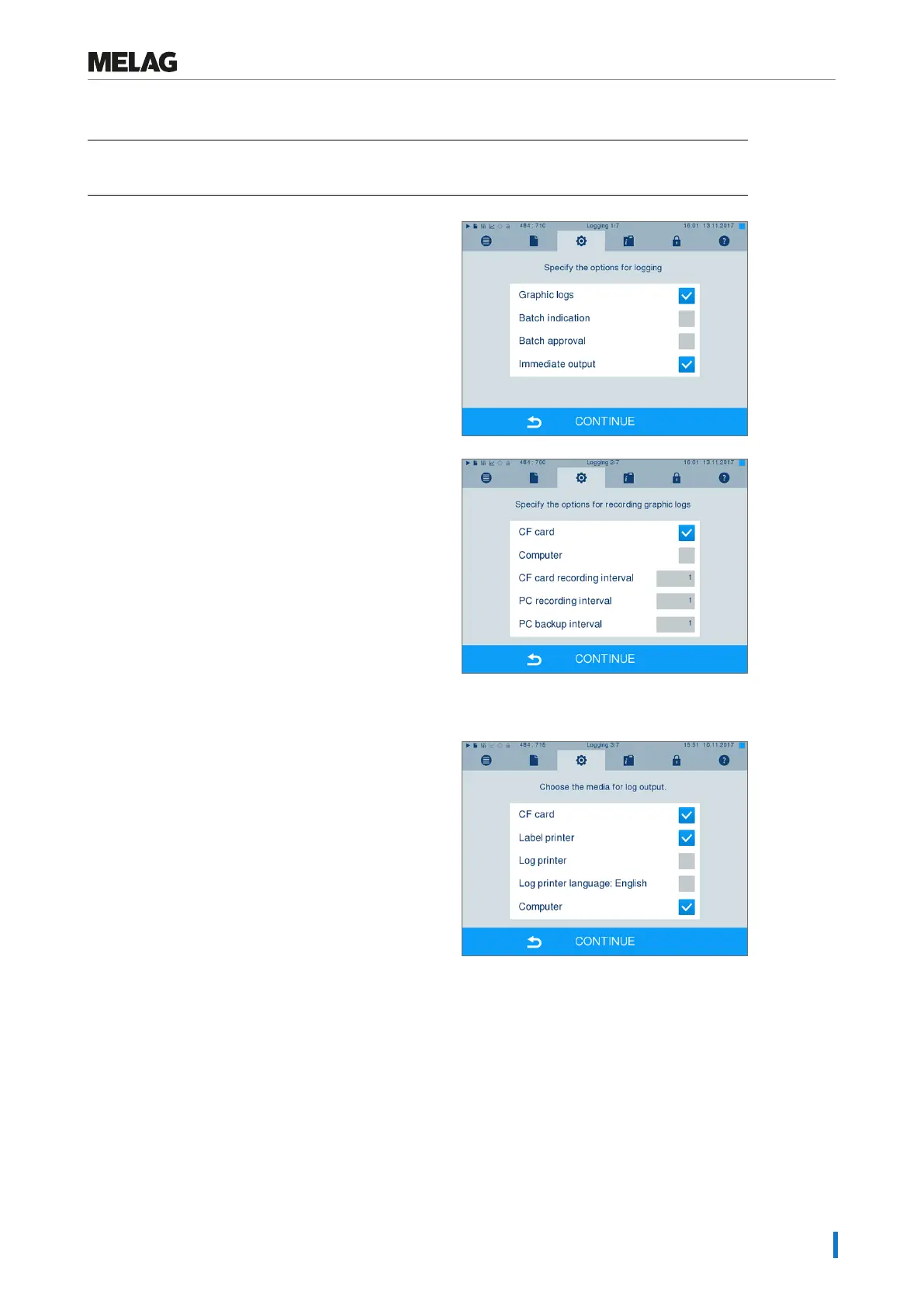 2. Press CONTINUE and select the CF card and/or the