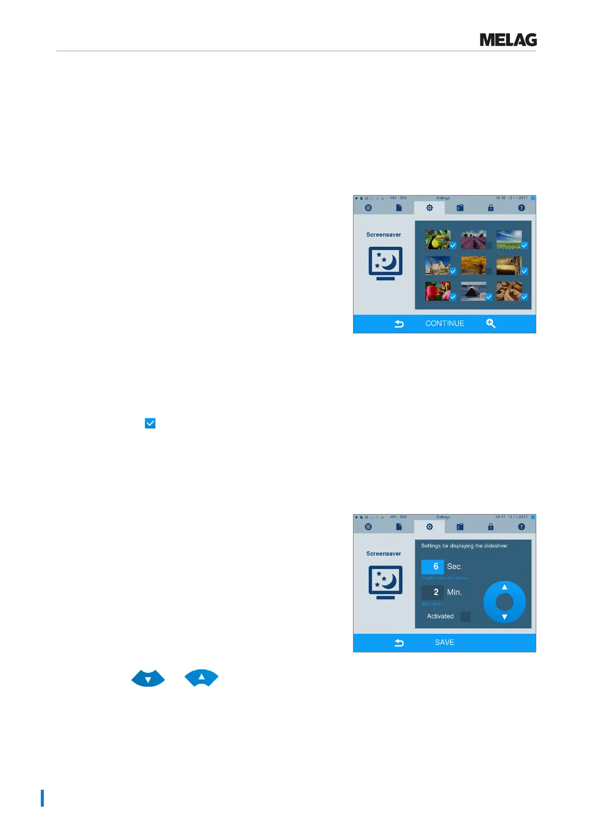 A screensaver can be activated to protect the display in standby operation. This displays a continuous