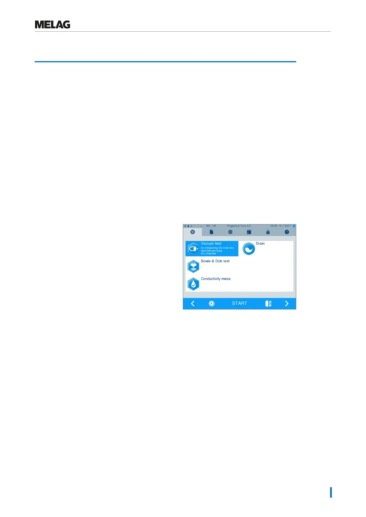 The steam sterilizer can be checked for leakages in the steam system using the vacuum test. This deter-