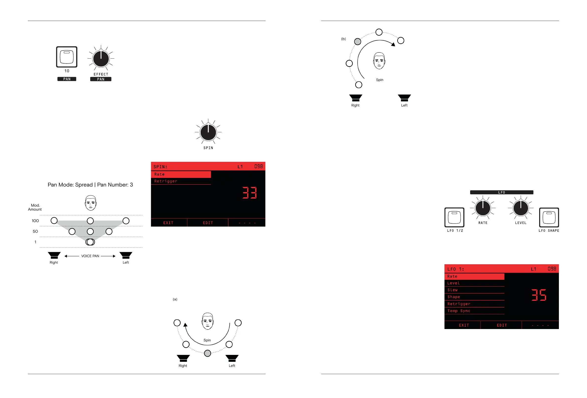 positions for the RATE and LEVEL of the LFO.