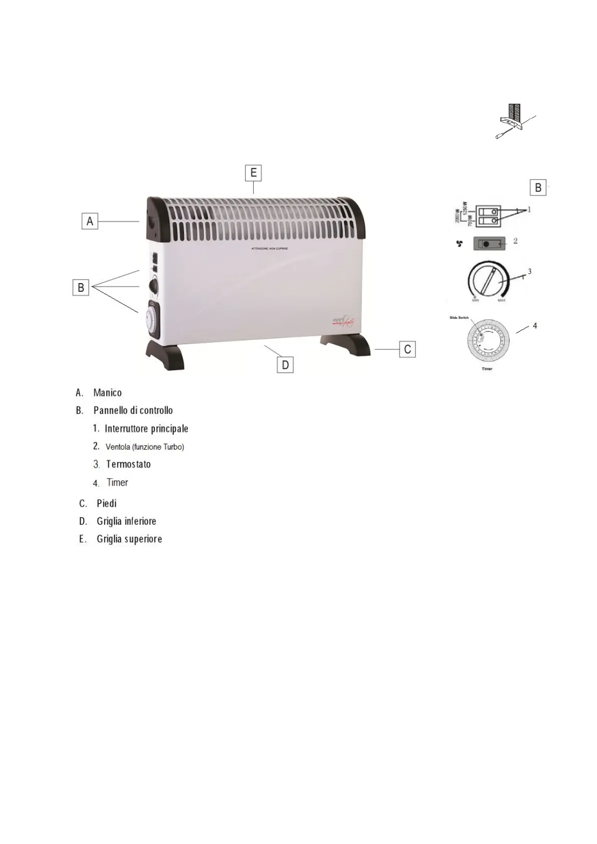 Prima di usare il convettore, montare i piedini (forniti separatamente nel cartone). Questi devono essere