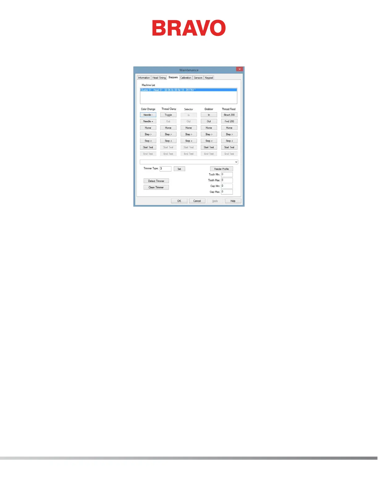 13. Open the “Tools>Maintenance” menu from the Bravo OS main menu and select the “Steppers”