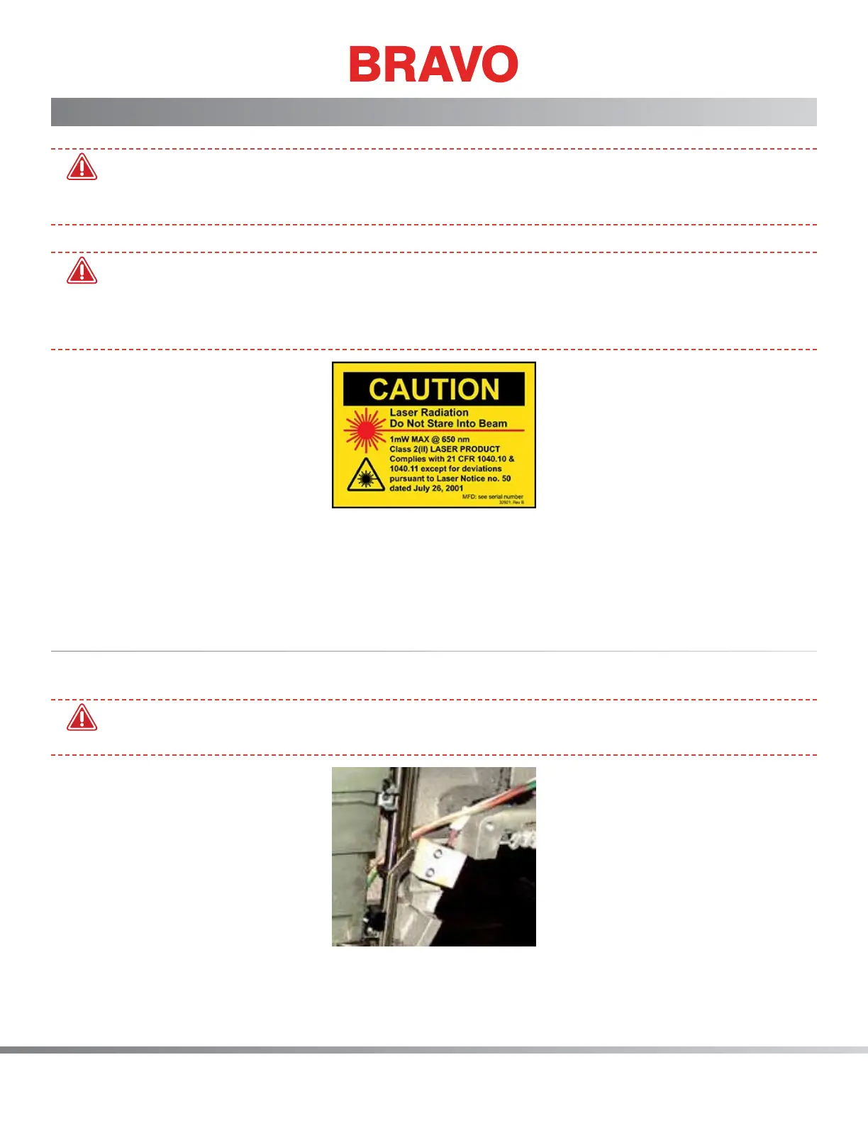 one’s eyes or face. DO NOT LOOK DIRECTLY AT THE LASER LENS WHILE IT IS ENERGIZED!