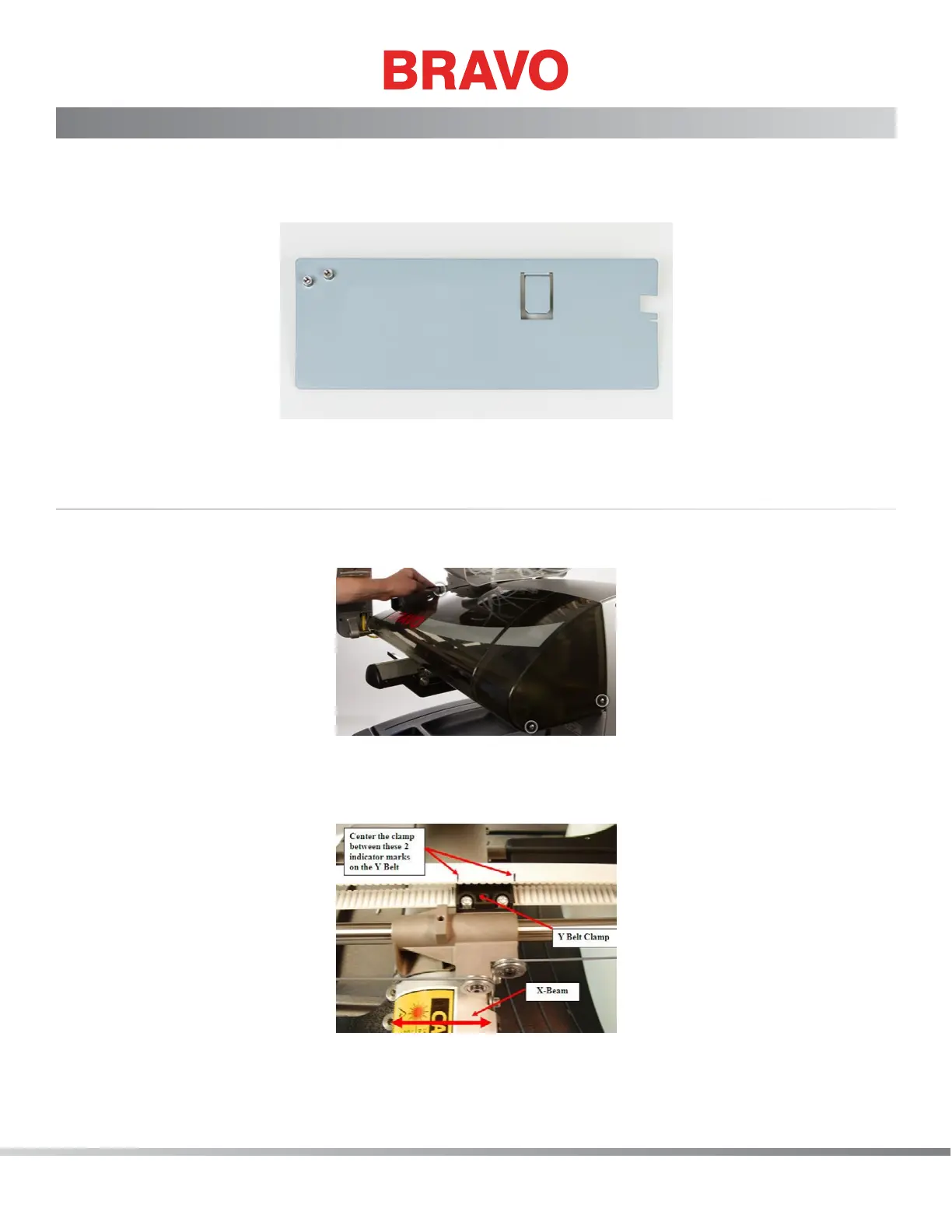 2. Center the Y Belt Clamp between the two black indicator marks on the Y Belt, as shown in picture