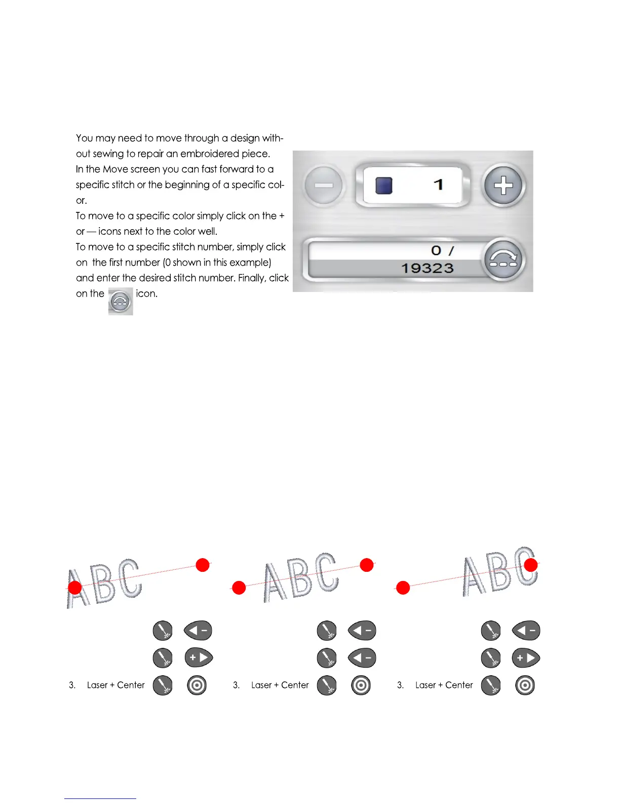 a mark, such as a stripe, on the garment. To do this, you use the hoop and the arrow keys to