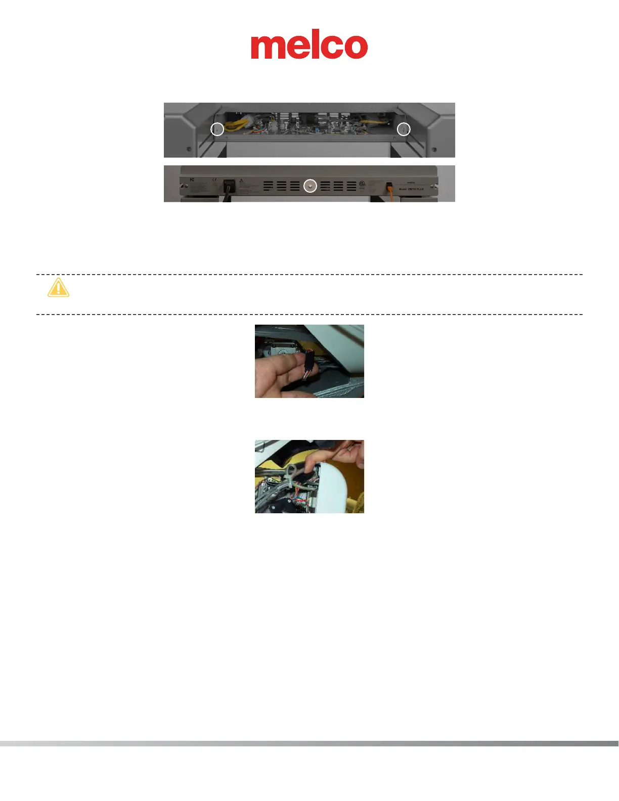 14. Remove any twist-lock cable ties that bundle the grabber/thread feed motor harness to the adja-