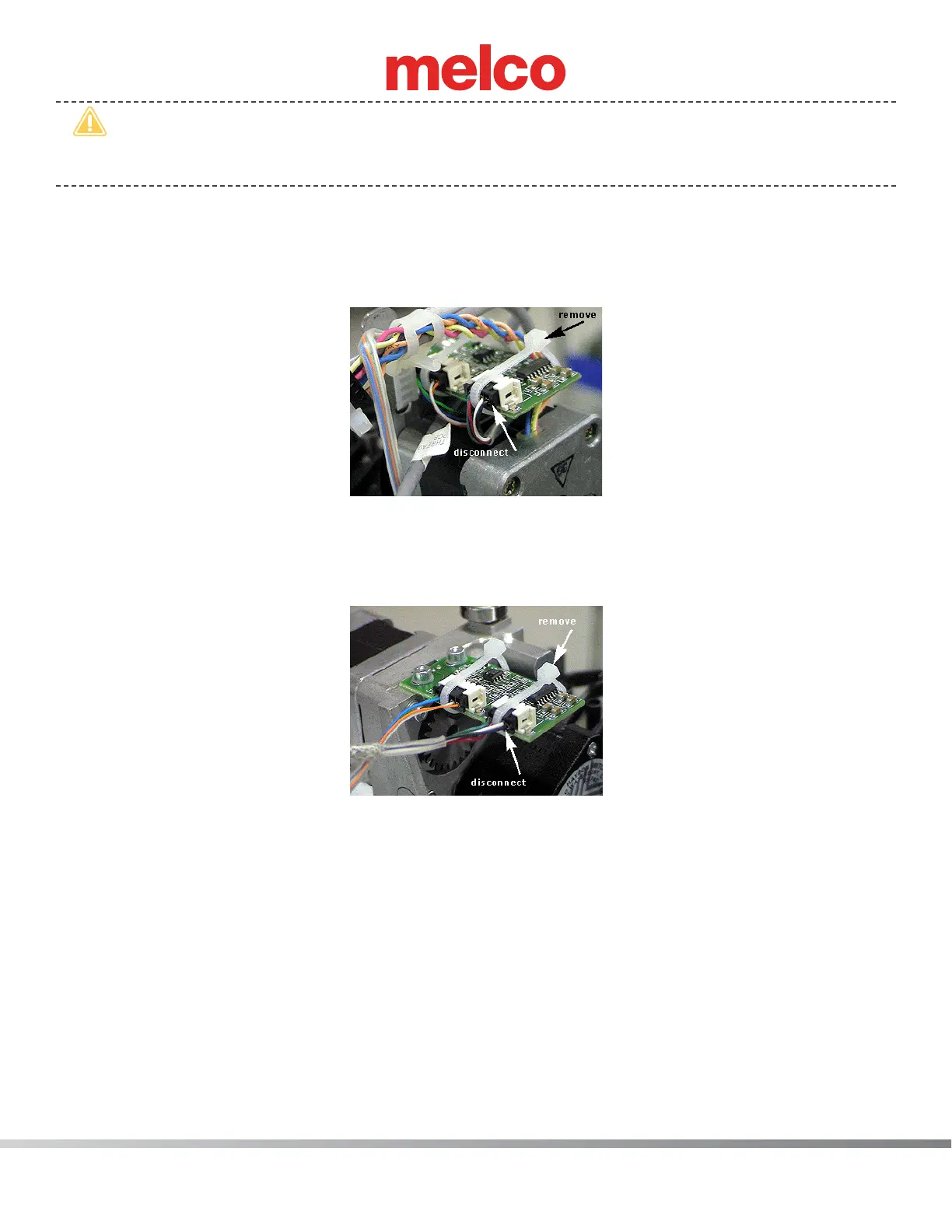 9. Disconnect the grabber/threadfeed/cc harness from the thread feeder home PCB located at the