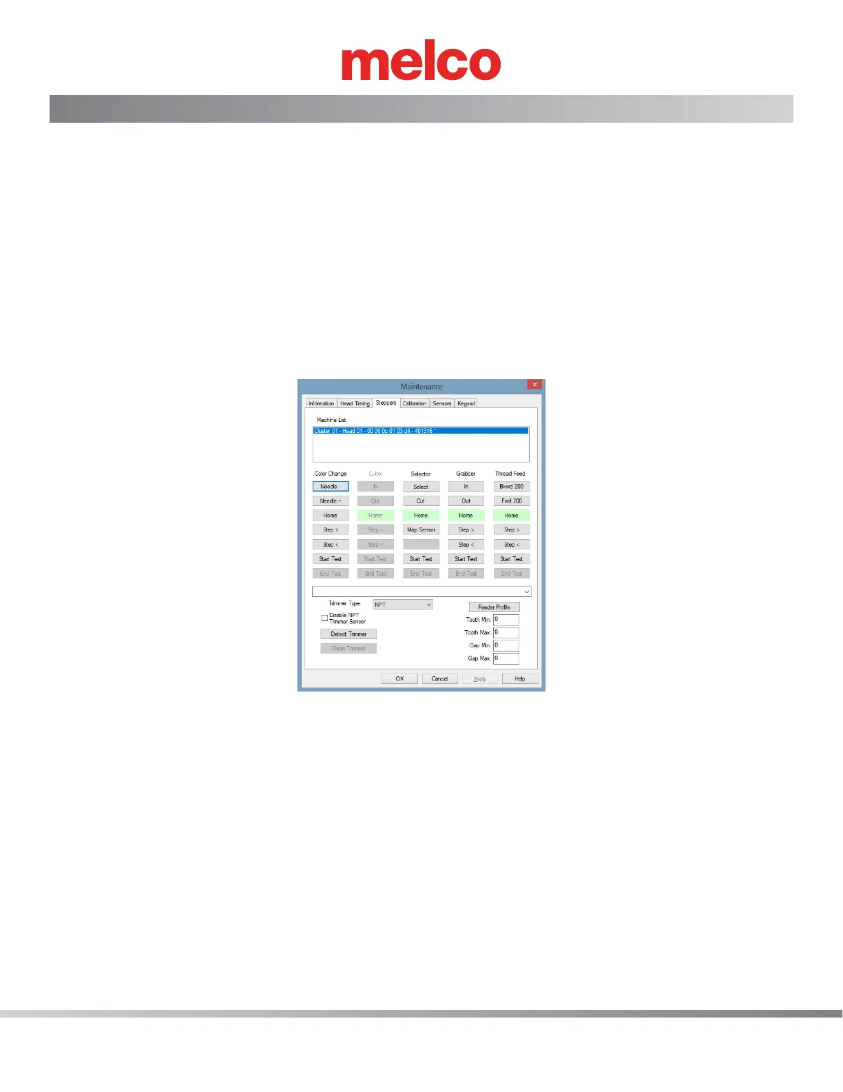 its cycle, click on the “Tools>Maintenance” menu in the Melco OS, select the “Steppers” tab and