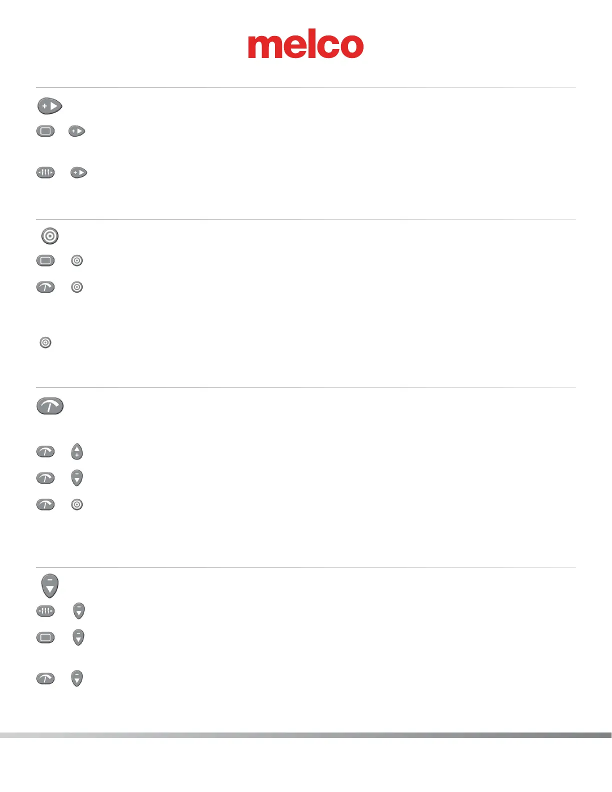 Adjustment and Arrow Down key decrease the sew speed (stitches per minute)
