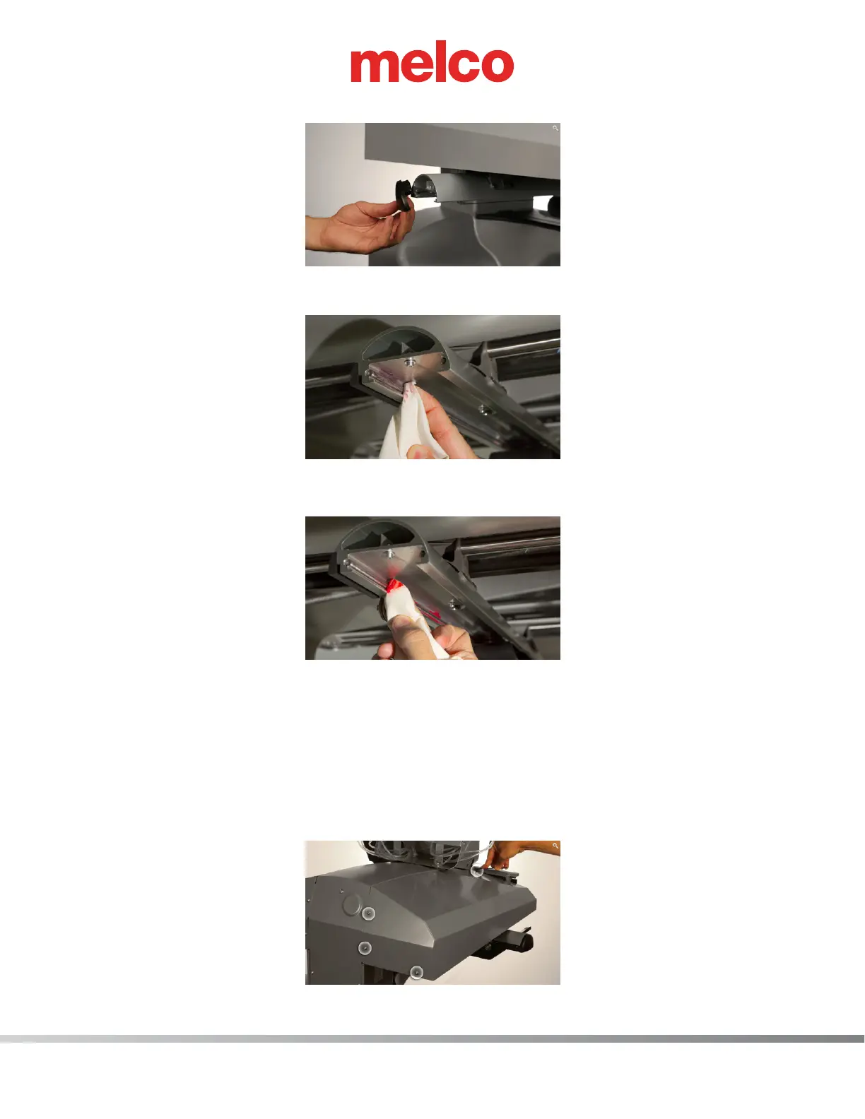 7. Wipe any lint, dust, and old grease from the front and back steel rails inside the x-beam as shown