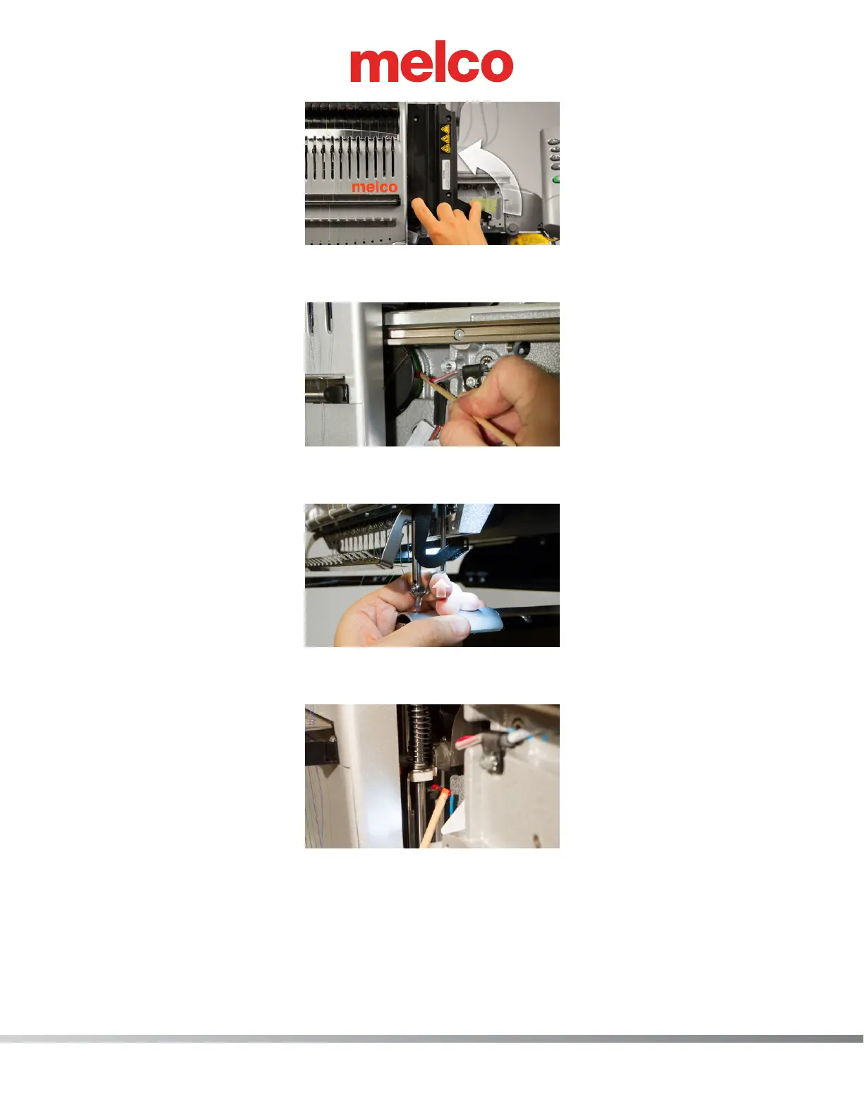 7. To gain access to the next maintenance point, the presser foot must be manually raised. Place a