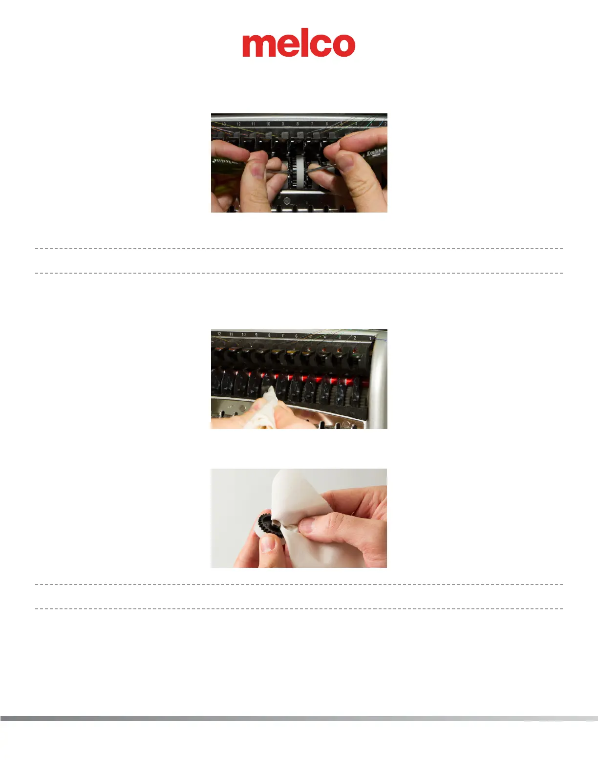 35. Using a clean, dry cloth, thoroughly clean the entire surface of the thread feed roller. Remove any