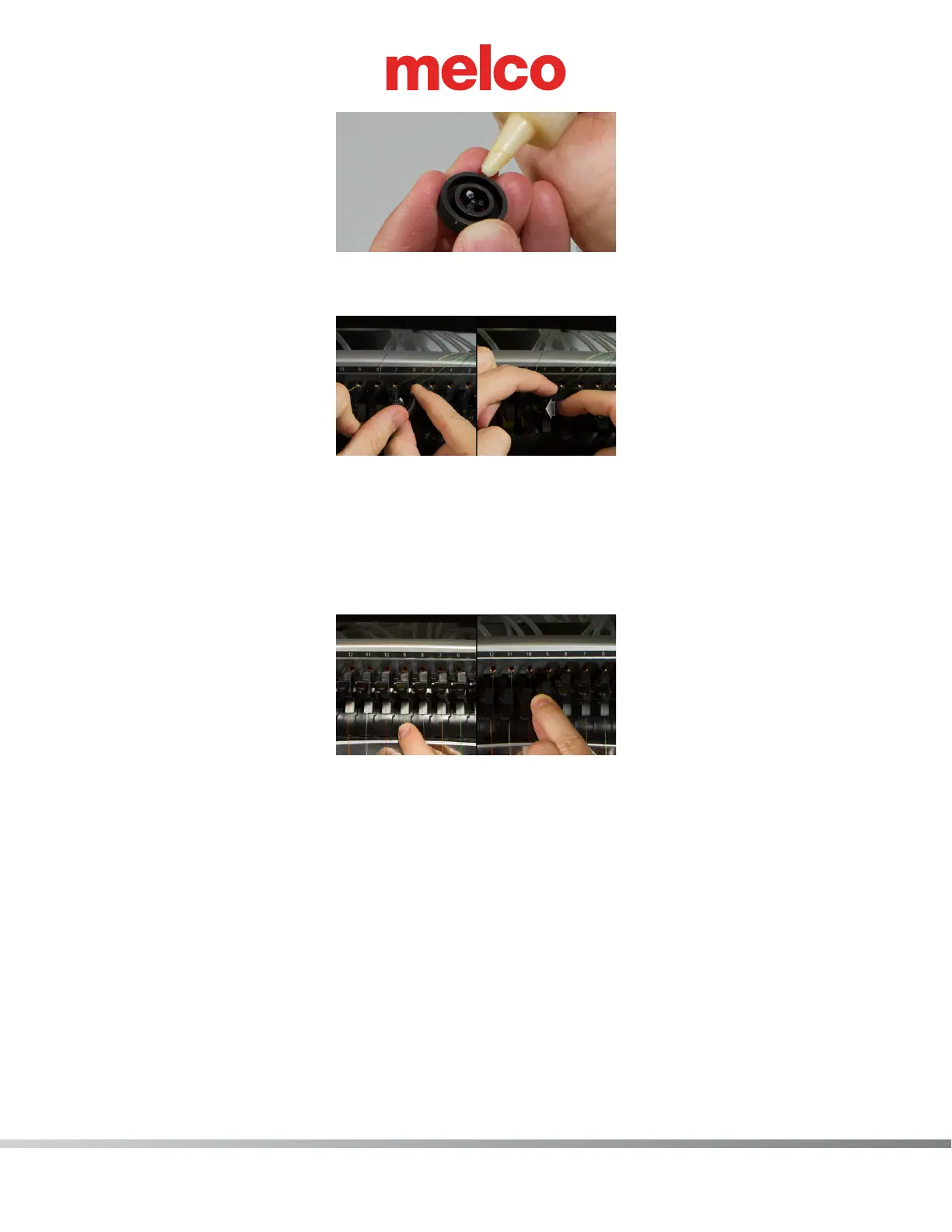52. Align the threads onto the v-notch in the front cover and lower thread feed levers.