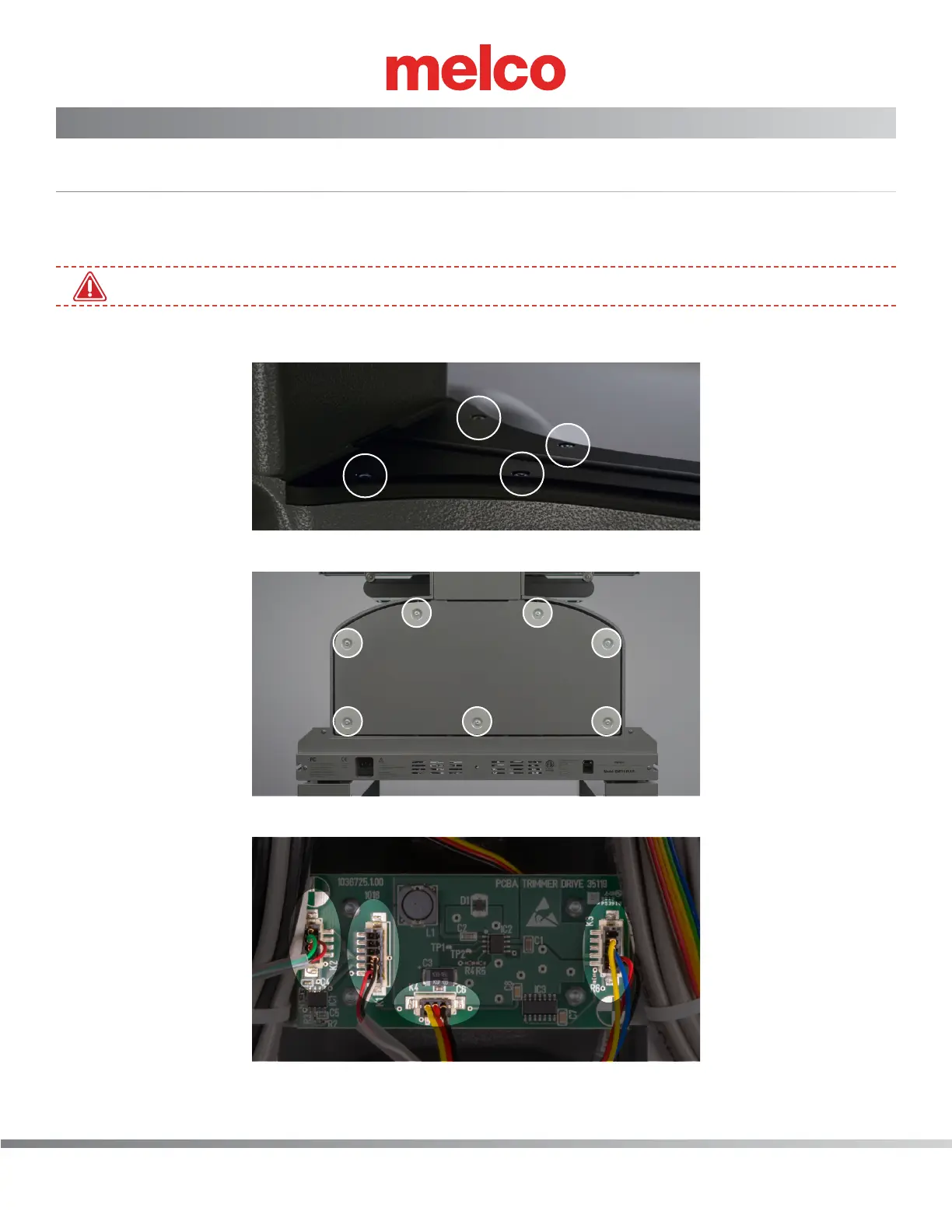 4. On the trimmer PCBA locate the connections labeled K1, K2, K3 and K4 and disconnect.