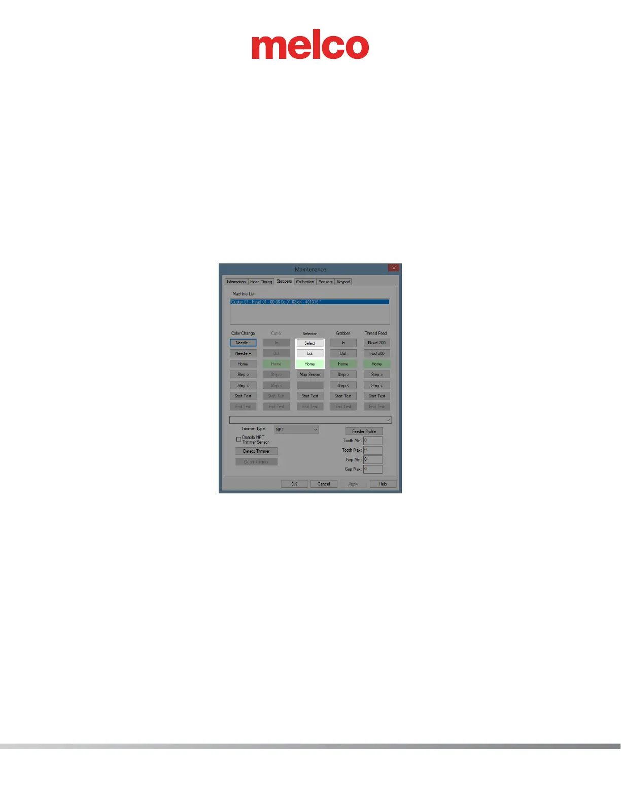 [Home] button color then the sensor is in correct home position.