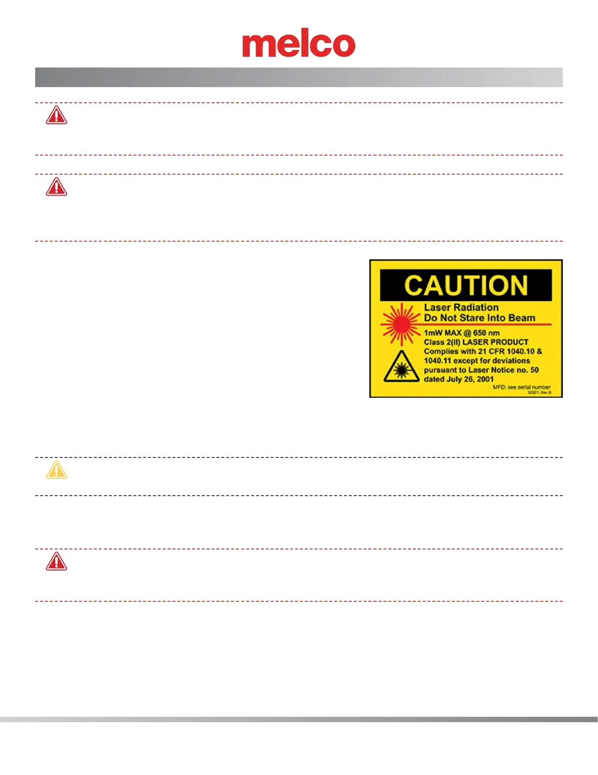 WARNING!! DO NOT LOOK DIRECTLY AT THE LASER LIGHT WHILE IT IS ENERGIZED!! Doing so