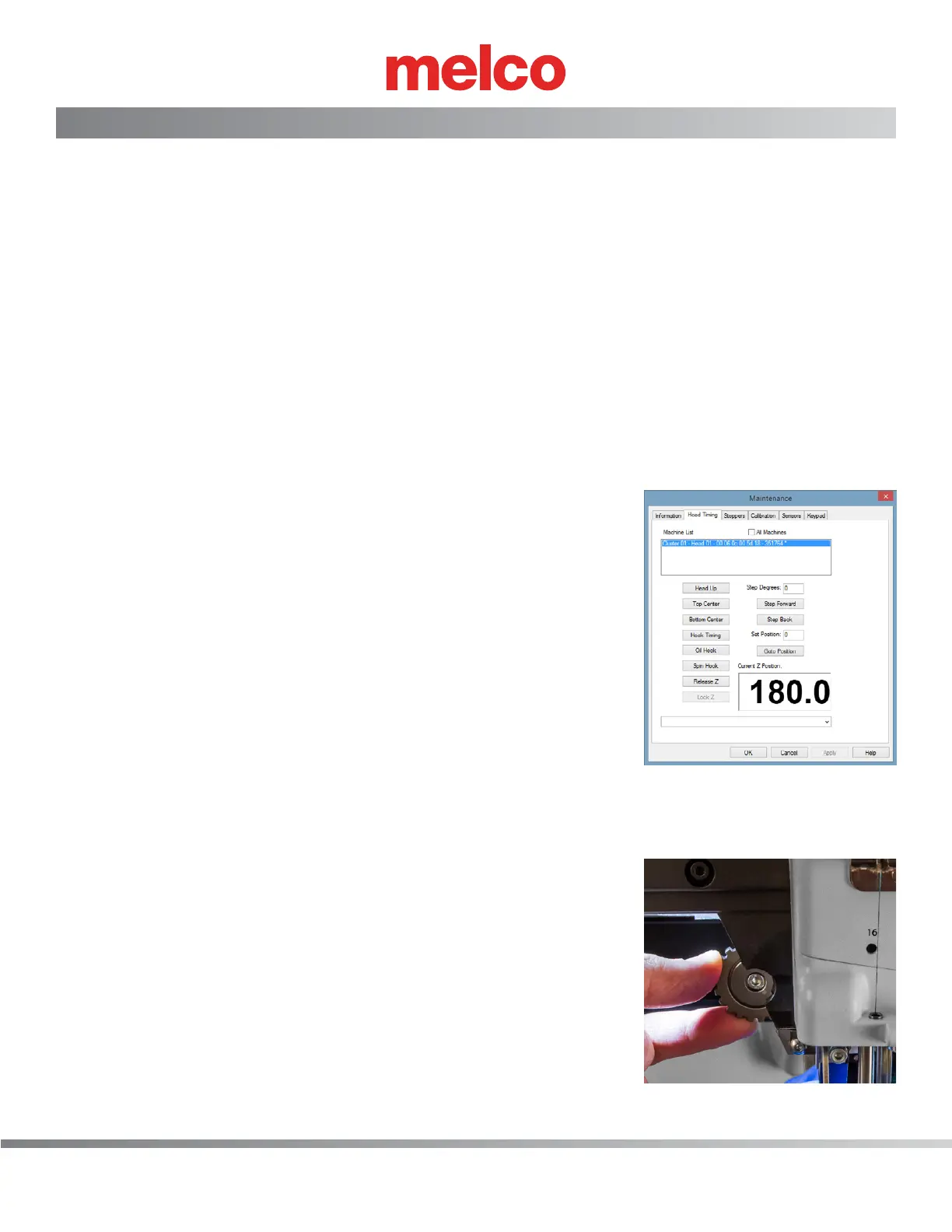 3. Click the Head Up button in the software Head Timing menu.